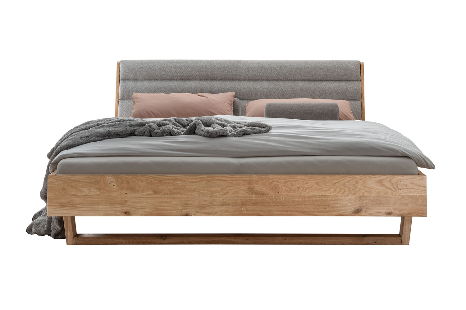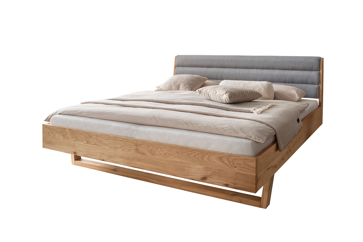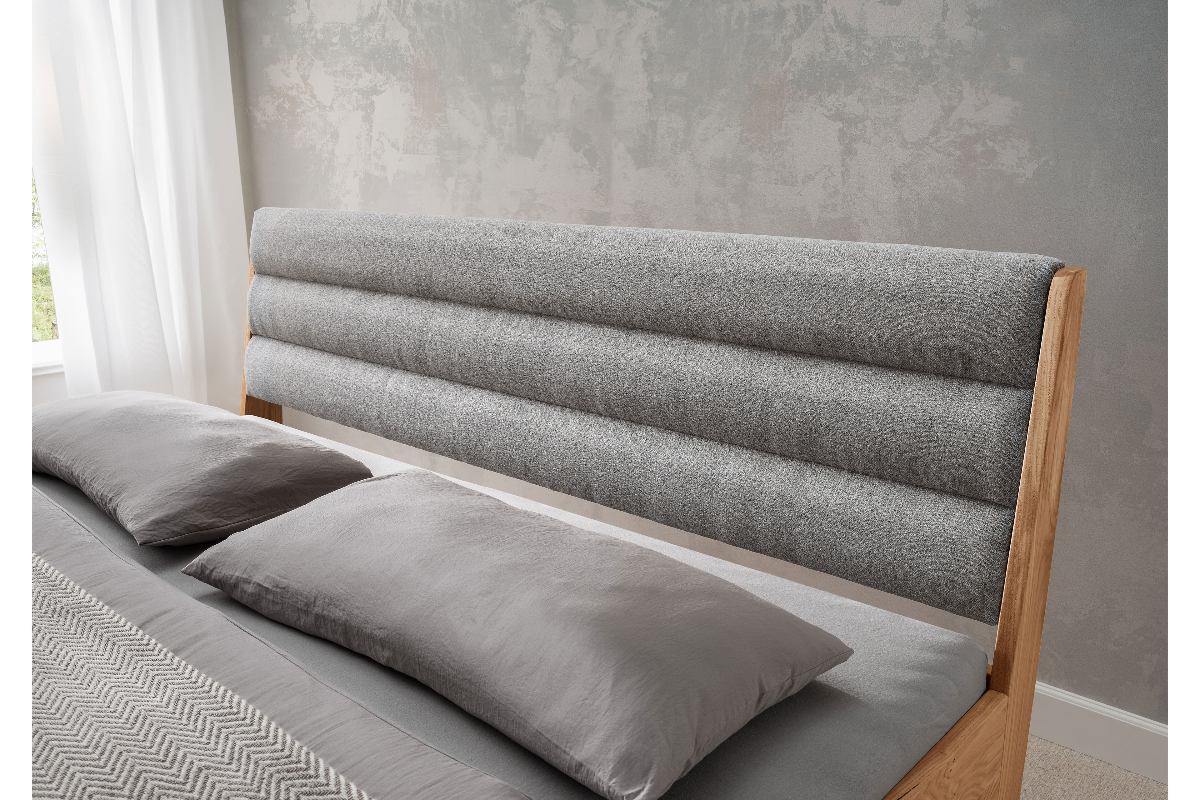 Mit seinem Charme und einer natürlichen Optik versehen, wickelt das Massivholzbett jeden um den Finger. Das Möbelstück von GK Möbelvertrieb schafft es auf raffinierte Weise, die sanfte Weichheit und geschmeidige Eleganz mit robuster Massivität und stabiler Stärke zu vereinen. Die Serie BE-0825 zeigt, wie gut sich ein puristisches Design mit unterschiedlichen Versionen eines Kopfteils kombinieren lässt. Der Bettrahmen und die Holzkufe sind dabei immer aus massivem Wildeichenholz gefertigt, unser Angebot wird außerdem begleitet von einem bequemen, hellgrauen Polsterkopfteil. Sie möchten gern eine andere Liegefläche als die vorgegebene von 140 x 200 cm auswählen? Dann nutzen Sie gern unsere Zusatzoptionen und entscheiden Sie sich für die Größe, die Ihnen zusagt. Die Bettseitenhöhe von circa 41 cm sorgt für einen einfachen Ein- und Ausstieg. BE-0825 von GK Möbelvertrieb – wie gemacht für Zeiten, in denen Nachhaltigkeit von entscheidender Bedeutung ist.