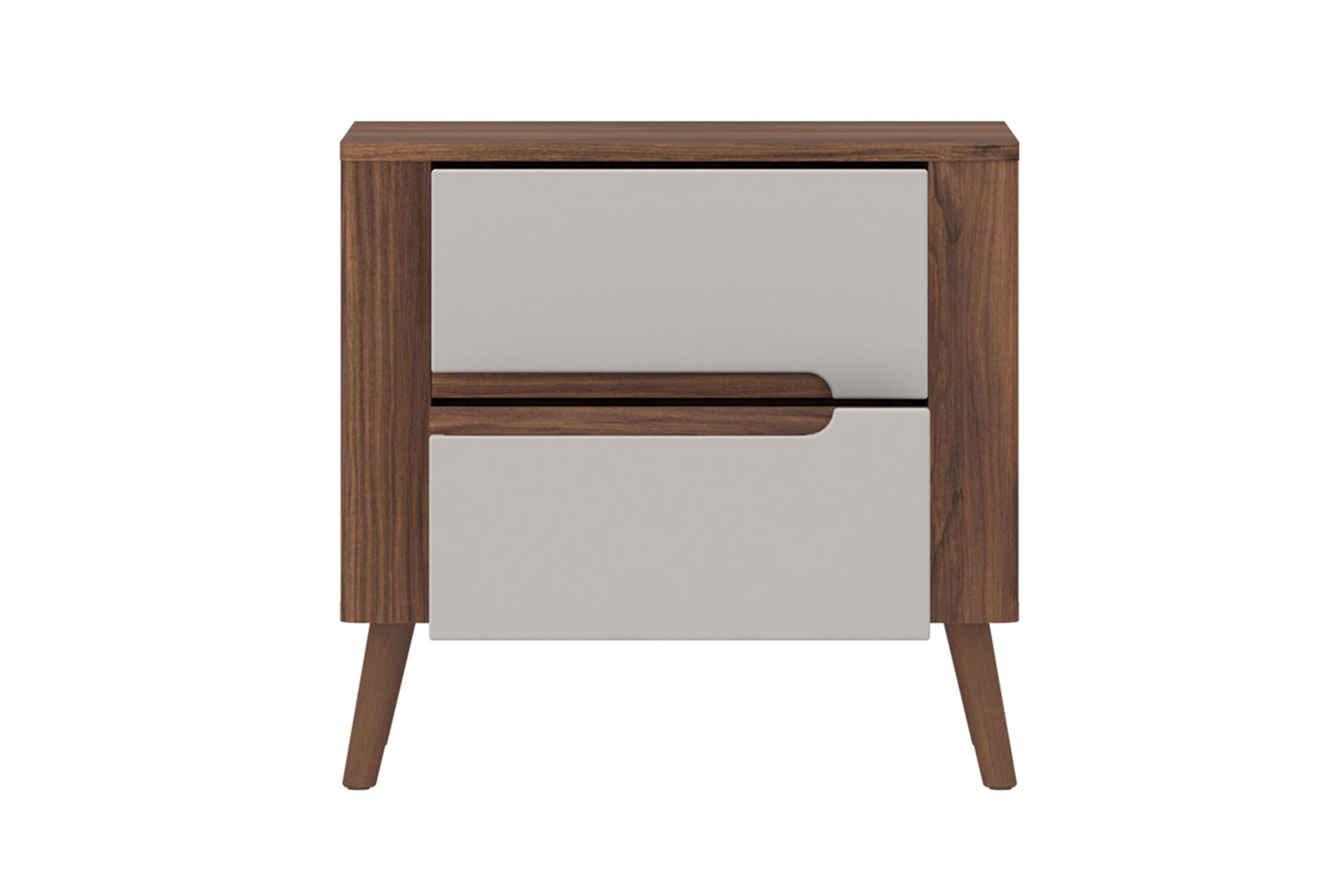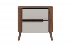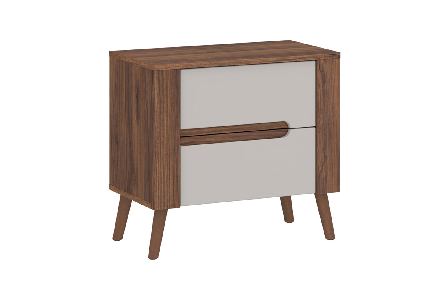 Sie sind auf der Suche nach einem Alltagshelfer, der direkt neben dem Bett auf Sie wartet? Mit der Nachtkonsole der Kollektion Amarillo-sleeping von Meble Wojcik haben Sie ihn gefunden. Die Kombination aus einer intensiven Walnuss-Nachbildung und dem eleganten Farbton Mondschein sorgt für ein angenehmes und behagliches Ambiente im Schlafzimmer. Der Nachttisch mit zwei Schubladen, die jeweils über einen Vollauszug verfügen, wird getragen von vier Holzfüßen, die dem Möbelstück eine leichte Optik verleihen. Hier finden kleine Utensilien oder auch ein Buch ihren geschützten und bettnahen Aufbewahrungsplatz. Der Oberboden bietet sich als Ablagefläche für Ihre Brille an, oder Sie platzieren hier eine Nachttischlampe. Statten Sie Ihren Raum mit diesem hilfsbereiten Beimöbel aus und kommen Sie in den Genuss eines modernen Designs, das Harmonie und Stil in Einklang bringt. Amarillo von Meble Wojcik – für Möbel, die Ihr Schlafzimmer mit ihrem Charme verzaubern.