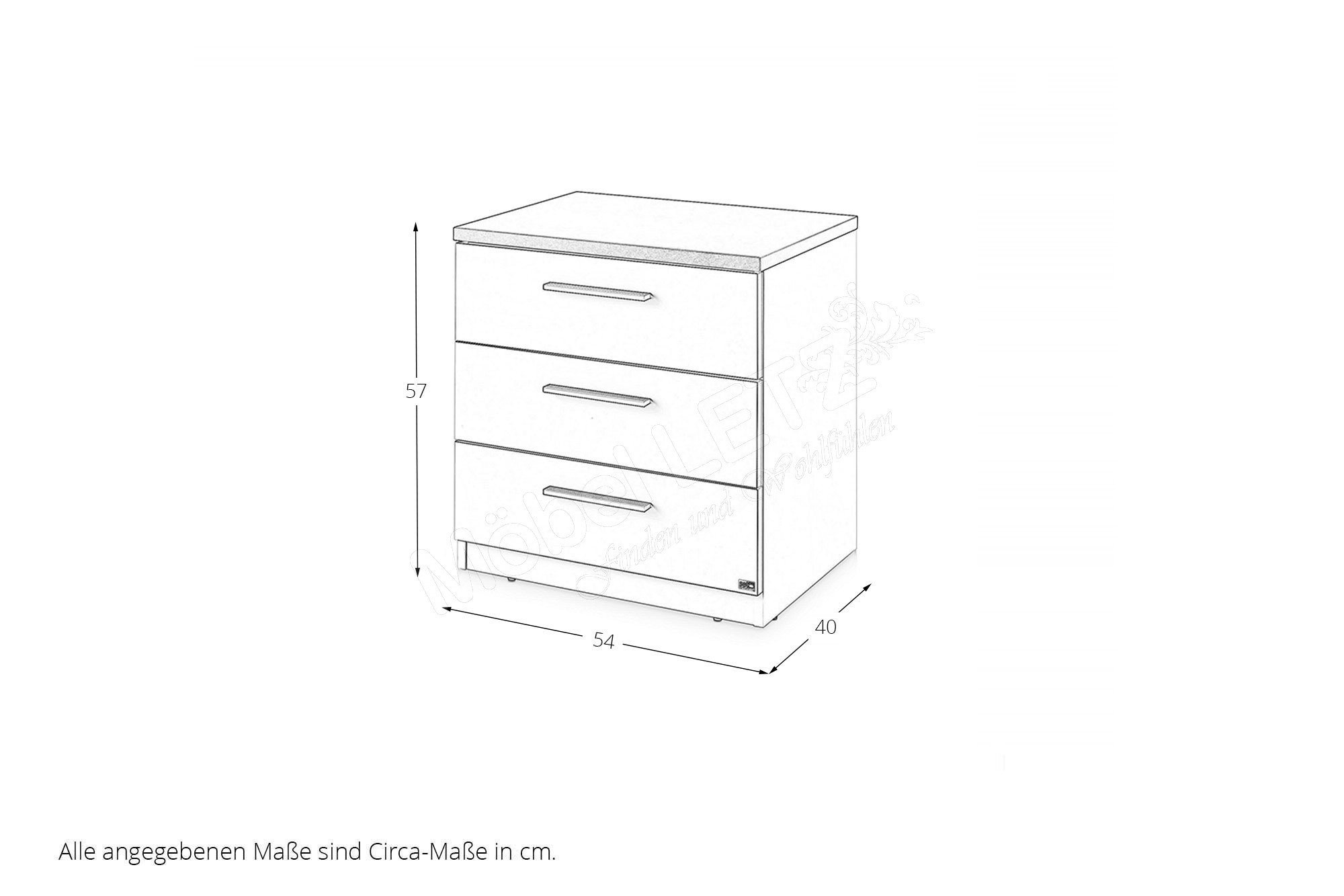 - Nachtkommode: 3 Schubkästen