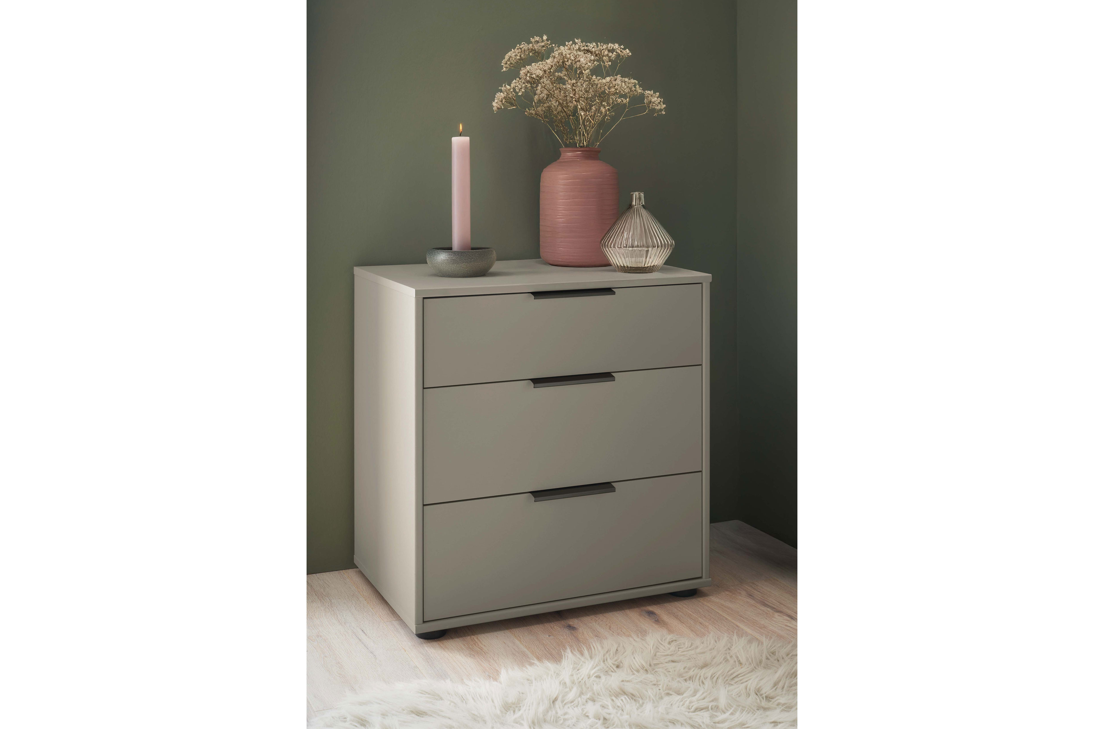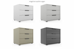 Die Nachtkommode aus dem Programm Dubai von Wiemann ist in zwei Breiten sowie drei Höhen verfügbar und lässt sich so ganz einfach mithilfe der Zusatzoptionen an Ihre individuellen Ansprüche anpassen. Auch für die Optik stehen verschiedene Auswahl-Möglichkeiten bereit. Sie können aus vier Farben wählen und zudem die Frontausführung der drei Schubladen als Dekor oder als Farbglas in der gewünschten Korpusfarbe bestimmen. Vorausgewählt ist der ca. 43 cm tiefe Nachtschrank in diesem Angebot in der komfortablen Höhe von rund 63 cm und mit einer Breite von etwa 60 cm. Dadurch lässt sich der kleine Ordnungshüter sowohl als Stauraum-Option neben einem Boxspringbett als auch als kompaktes Beistellschränkchen im Wohnraum neben einer Couch oder einem Schlafsofa nutzen. Konfigurieren Sie die Dubai Nachtkonsole von Wiemann – Möbel made in Germany ganz einfach so, wie sie am besten zu Ihren räumlichen Gegebenheiten und persönlichen Bedürfnissen passt.