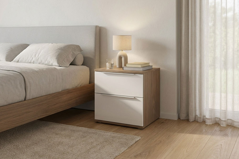 Nachttisch von Disselkamp - Modell Glassystem - mit 2 Schubladen Glassystem - für Schränke, die auf Ihre Bedürfnisse zugeschnitten sind.