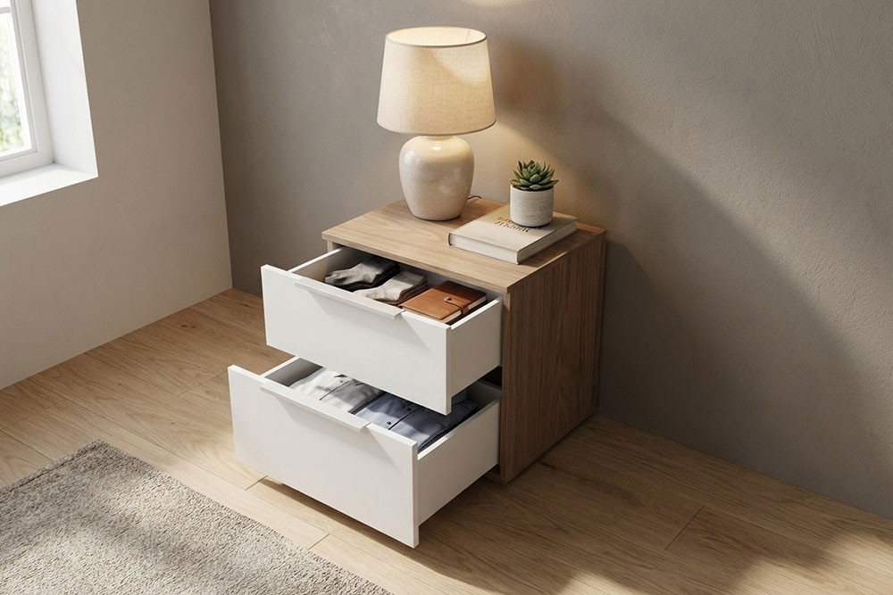 - Nachtkonsole: stehend, mit 2 Schubkästen