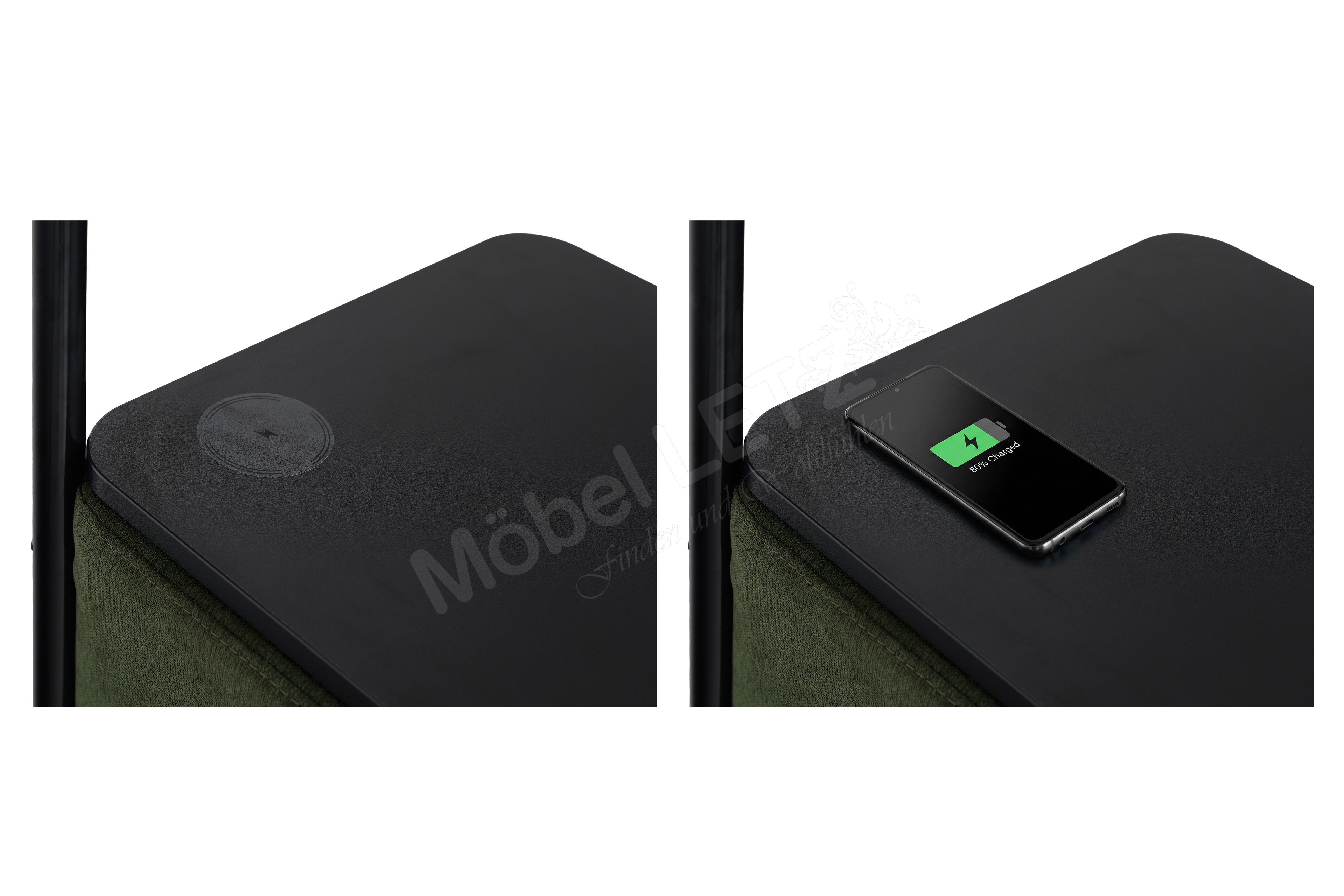 Die elegante Konsole 84002 von Hukla präsentiert sich im angesagten modernen Dunkelgrün und ist die perfekte Ergänzung für jedes stilvolle Schlafzimmer. Mit ihrer schwarzen Ablageplatte und dem integrierten Induktionsladefeld bietet sie nicht nur einen praktischen Ort für Ihre Nachtlektüre, sondern auch eine clevere Lösung zum kabellosen Aufladen Ihrer mobilen Geräte. Die Konsole ist mit schicken schwarzen Metallfüßen ausgestattet. Damit können Sie die Nachtkonsole problemlos an den gewünschten Platz stellen, ganz nach Ihren individuellen Bedürfnissen. Mit ihren kompakten Abmessungen bietet sie ausreichend Ablagefläche für Ihre persönlichen Gegenstände, wie beispielsweise Ihre Brille, Ihr Buch oder Ihre Taschentücher. Sie behalten immer alles Wichtige in greifbarer Nähe, während Sie erholsam einschlafen oder am Morgen aufwachen. Entdecken Sie den praktischen und stilvollen Nachttisch von Hukla und bereichern Sie Ihr Schlafzimmer mit diesem hübschen Möbelstück.