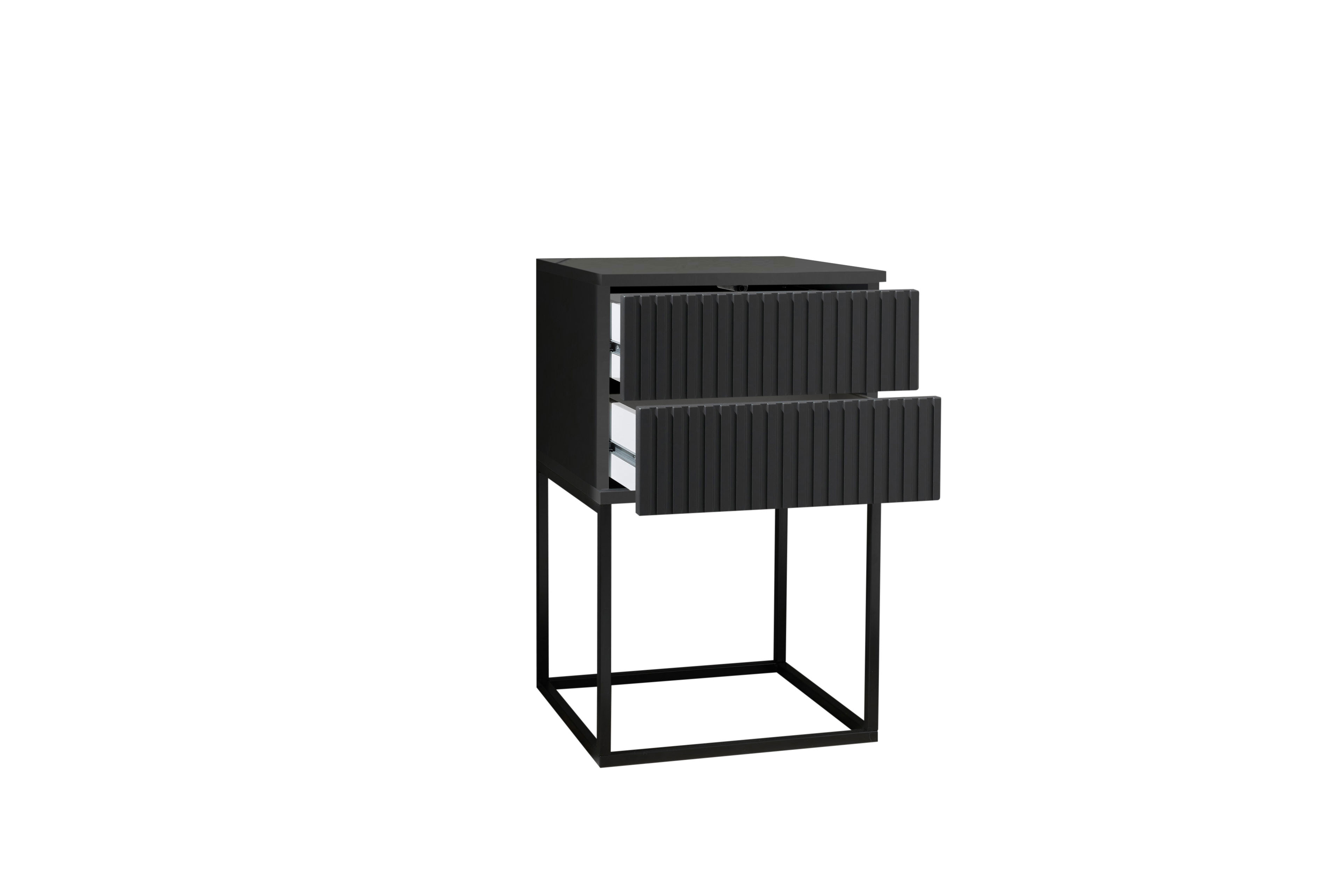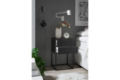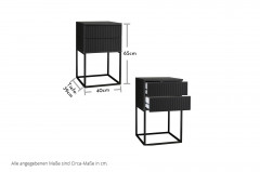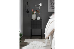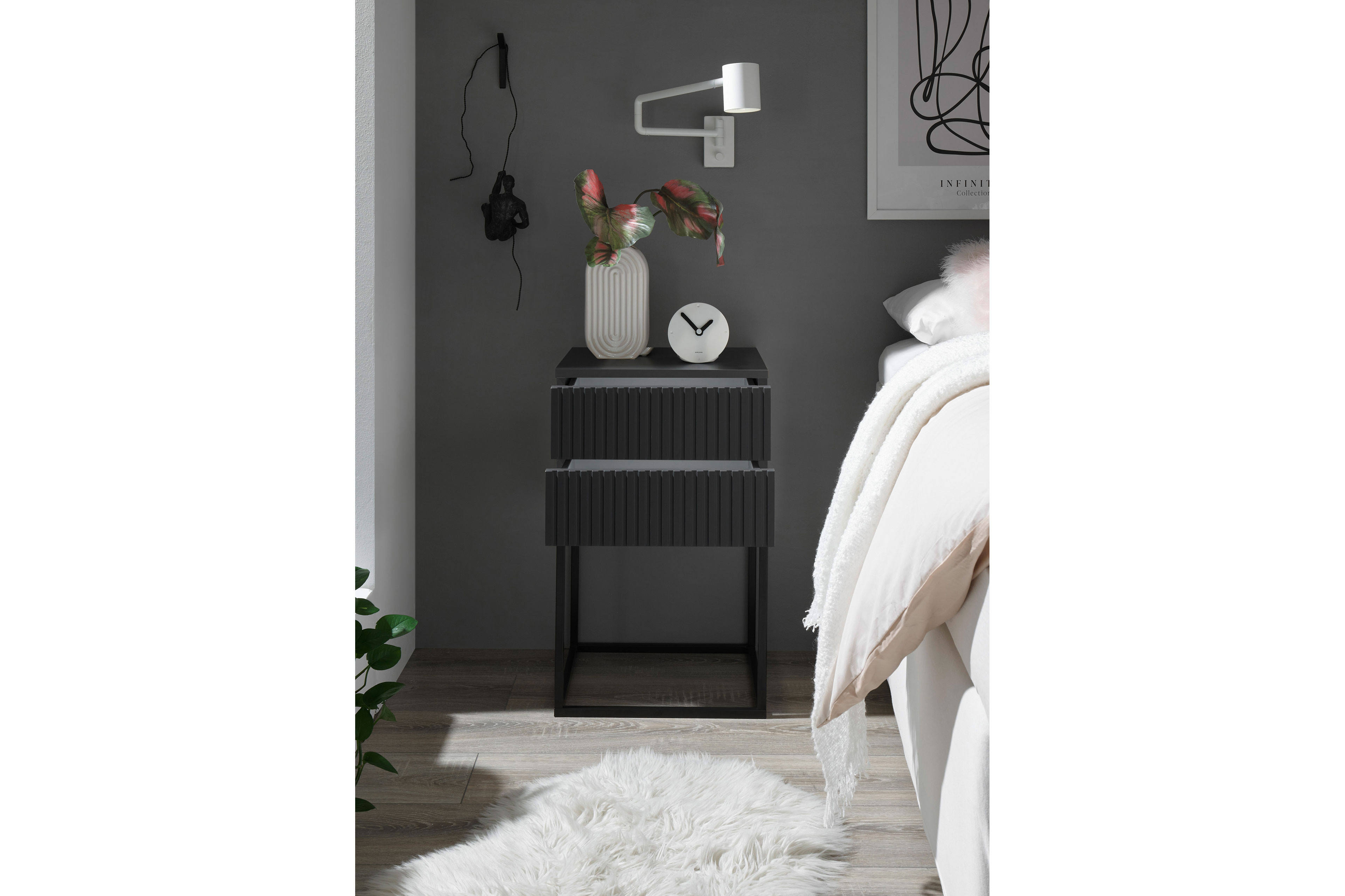 Boxspringbetten haben sich still und heimlich in die Schlafzimmer - und in die Herzen - vieler Menschen geschlichen. Oft ist dabei auch ihre angenehme Einstiegshöhe entscheidend, da sie den Alltag spürbar erleichtert und den Körper schont. Sie haben bereits ein Boxspringbett oder sind im Begriff sich eins zu bestellen und Sie suchen noch die passende Nachtkonsole? Das Nachtkonsolen-Programm Marle von POL Power bietet Ihnen mit dem hier angebotenen Möbelstück die ideale Ergänzung für Ihr hohes Komfortbett. Sie ist ungefähr 40 cm breit und etwa 65 cm hoch, in Etwa so hoch wie die Einstiegshöhe eines Boxspringbettes, und stellt Ihnen gleich zwei Schubladen zum Verstauen zur Verfügung. Das Schubladenpaar, das sich hier in Graphit zeigt und sich mit einer grifflosen Front in Rillenstruktur schmückt, wird von einem schwarzen Metallgestell getragen. Die beiden Fächer lassen sich durch einen leichten Druck auf die jeweilige Schubfachfront öffnen. Alle Nachtkommoden aus dem Programm Marle von POL Power in den unterschiedlichen Größen und Ausführungen finden Sie in unserem Konfigurator.