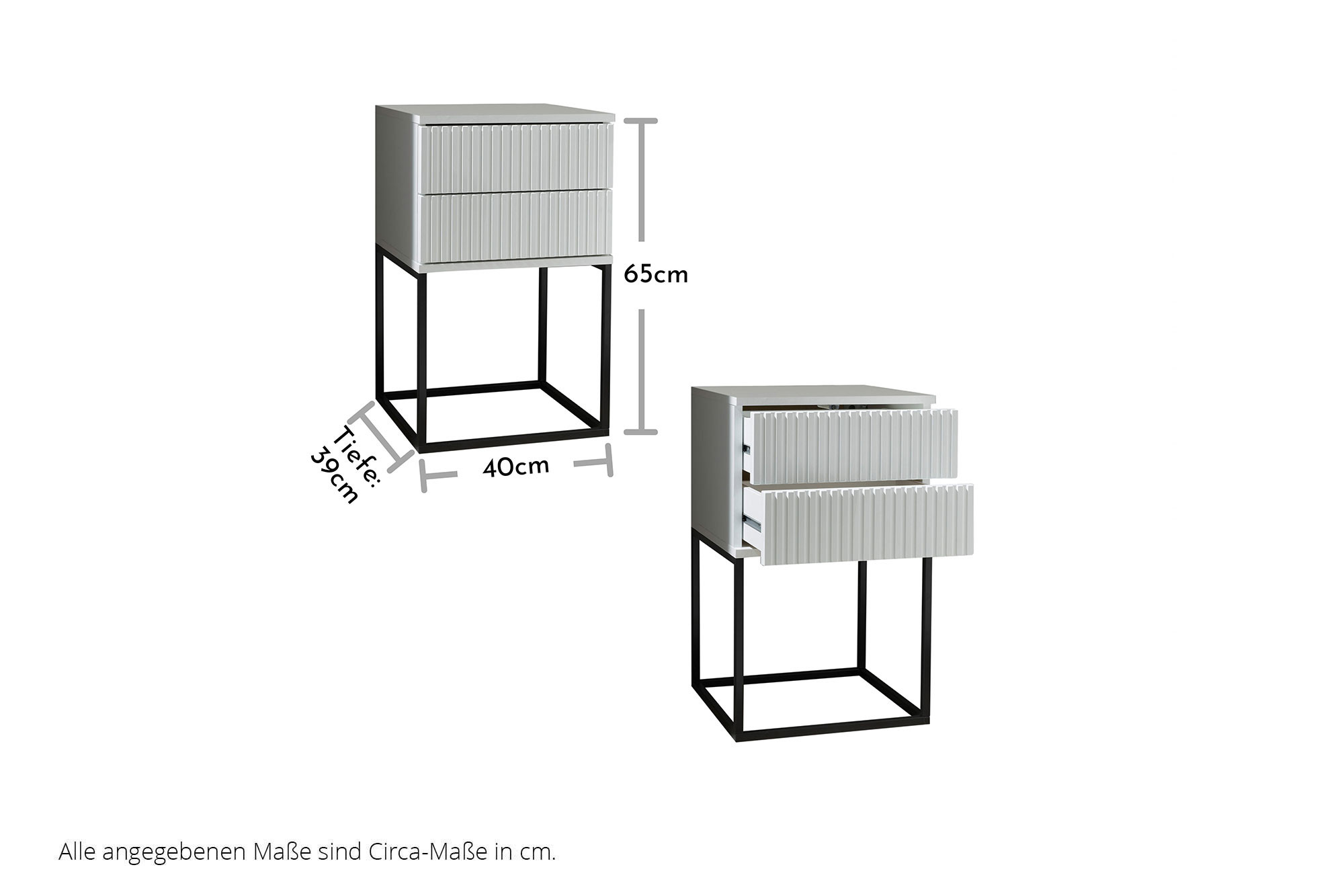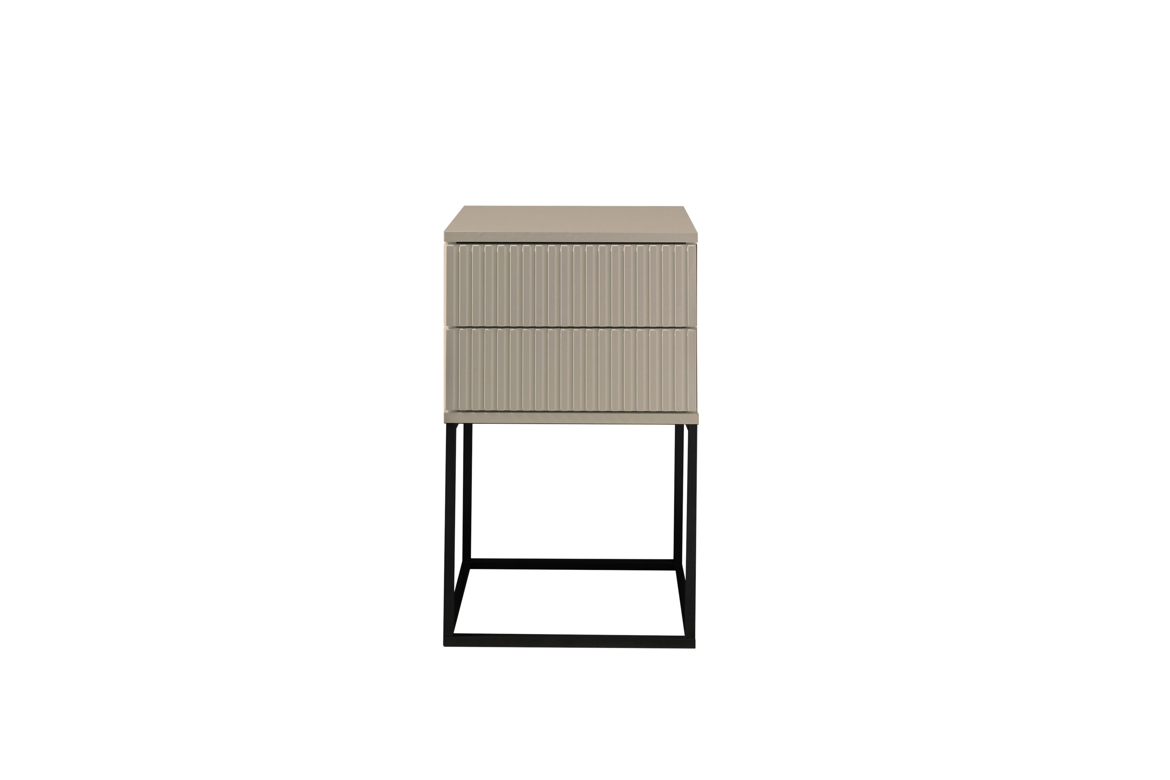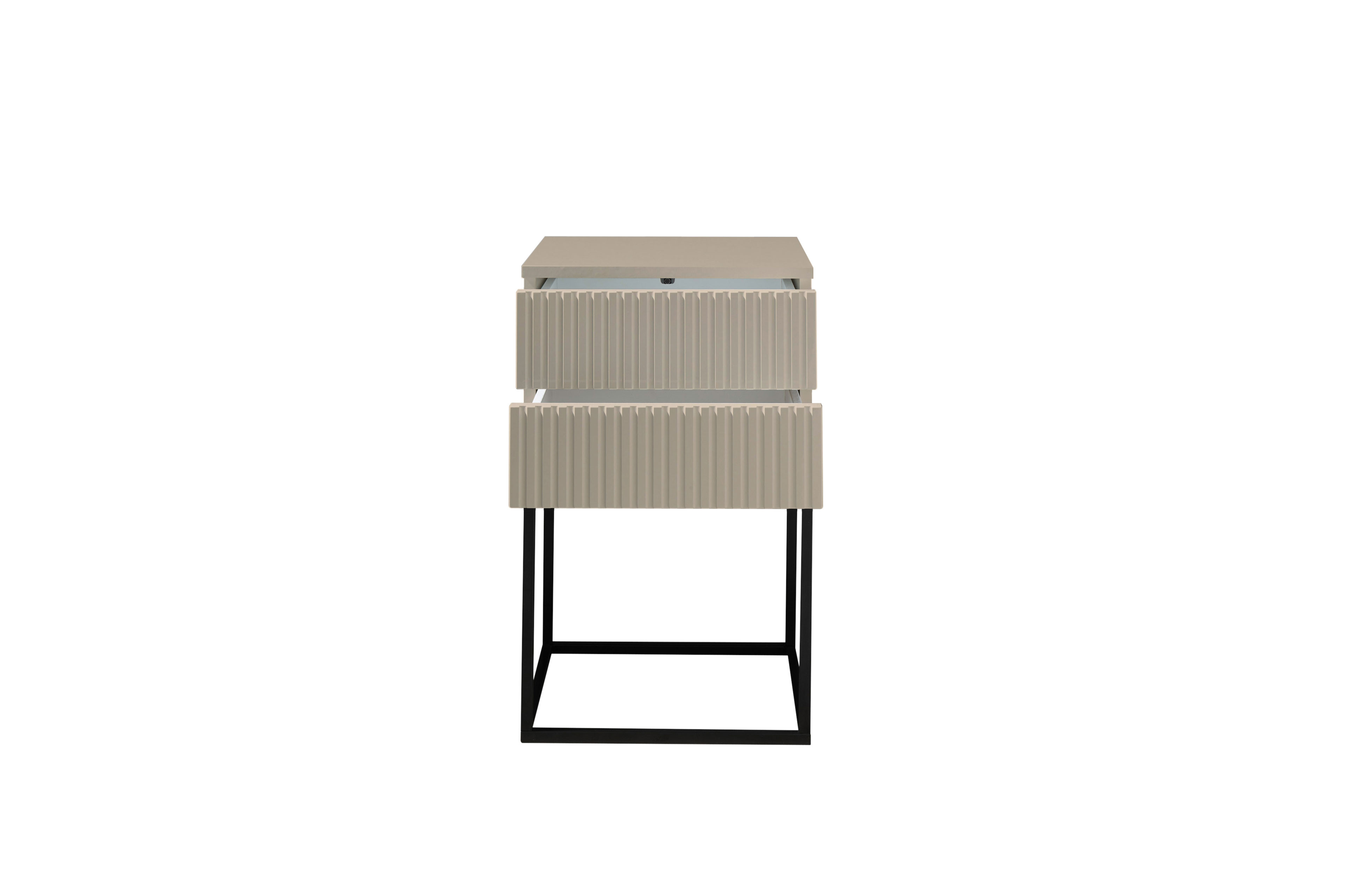 Boxspringbetten haben sich still und heimlich in die Schlafzimmer - und in die Herzen - vieler Menschen geschlichen. Oft ist dabei auch ihre angenehme Einstiegshöhe entscheidend, da sie den Alltag spürbar erleichtert und den Körper schont. Sie haben bereits ein Boxspringbett oder sind im Begriff sich eins zu bestellen und Sie suchen noch die passende Nachtkonsole? Das Nachtkonsolen-Programm Marle von POL Power bietet Ihnen mit dem hier angebotenen Möbelstück die ideale Ergänzung für Ihr hohes Komfortbett. Sie ist ungefähr 40 cm breit und etwa 65 cm hoch, in Etwa so hoch wie die Einstiegshöhe eines Boxspringbettes, und stellt Ihnen gleich zwei Schubladen zum Verstauen zur Verfügung. Das Schubladenpaar, das sich hier in Kaschmir zeigt und sich mit einer grifflosen Front in Rillenstruktur schmückt, wird von einem schwarzen Metallgestell getragen. Die beiden Fächer lassen sich durch einen leichten Druck auf die jeweilige Schubfachfront öffnen. Alle Nachtkommoden aus dem Programm Marle von POL Power in den unterschiedlichen Größen und Ausführungen finden Sie in unserem Konfigurator.