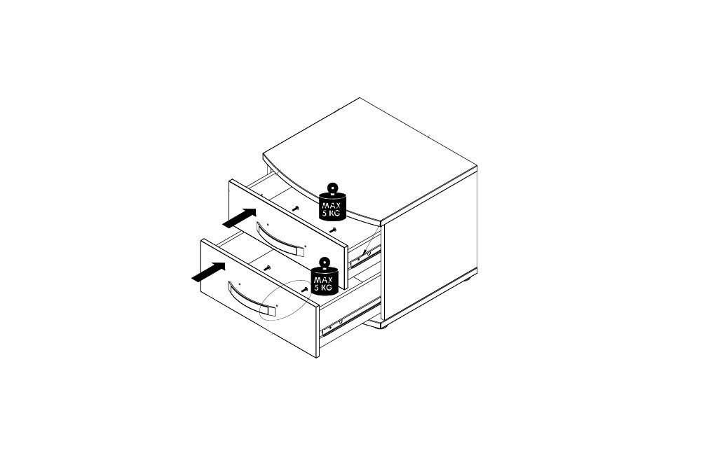- Oberboden maximale Belastbarkeit bis 40 kg, je Schublade maximale Belastbarkeit bis 5 kg