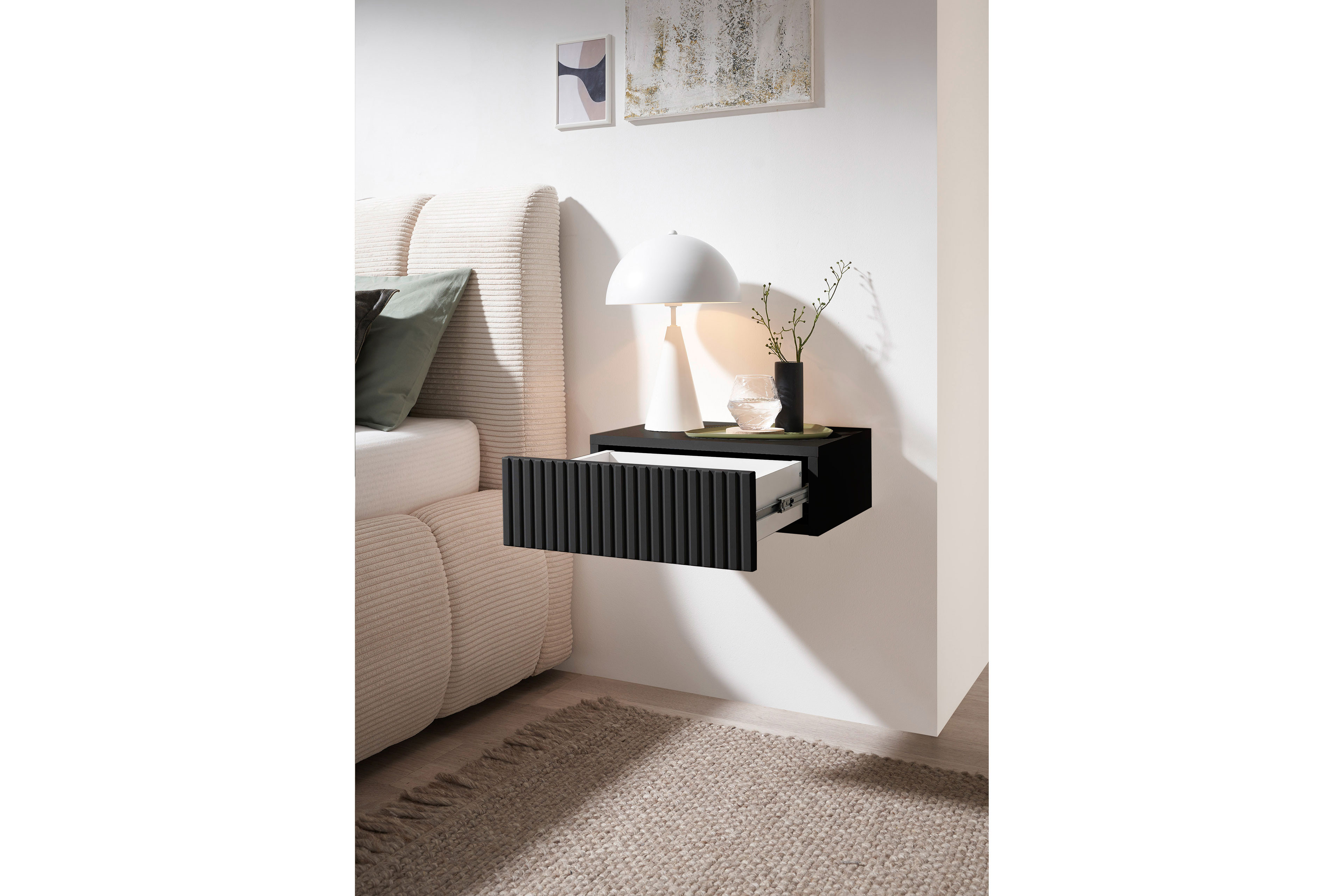 Nachtkonsole hängend von POL Power - Modell Taboni - mit Rillen-Front Taboni – klein im Format, groß im Komfort