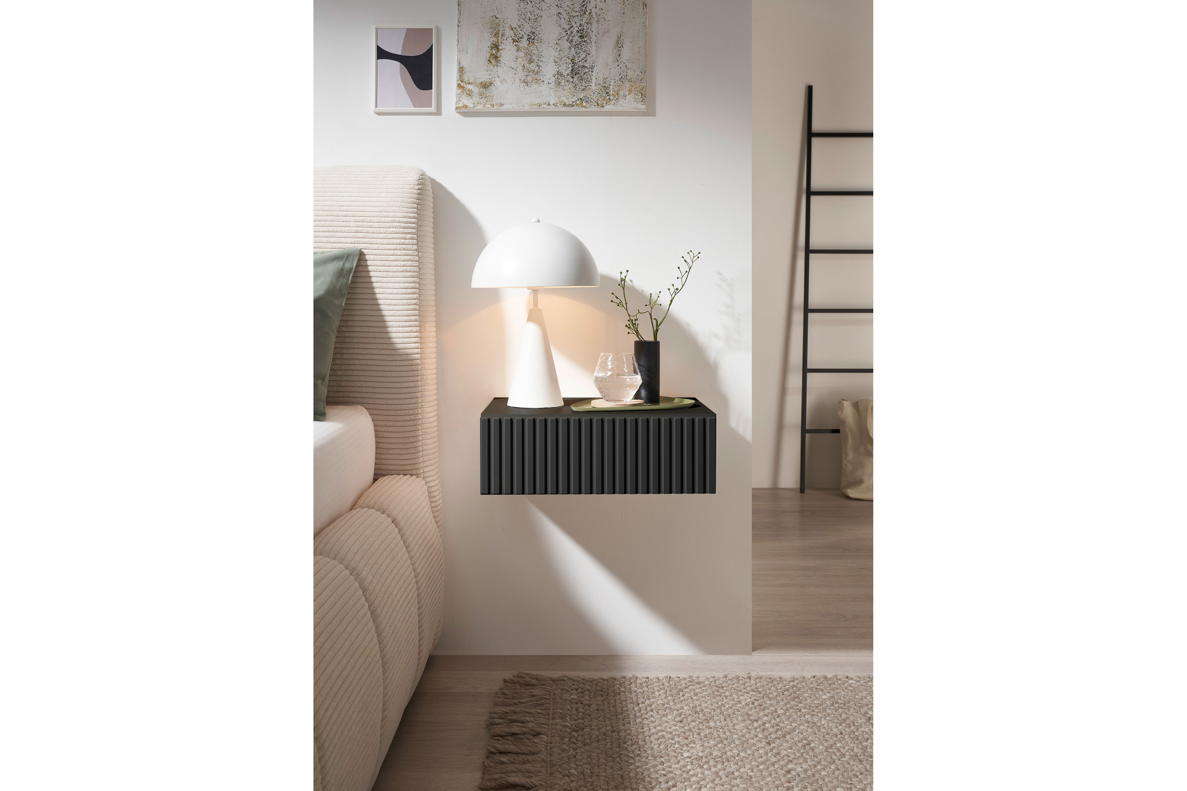 Klein, smart und immer zur Stelle – der Hänge-Nachtschrank Taboni des Möbelherstellers POL Power. Manchmal braucht es nicht viel, um Ordnung und Stil ins eigene Schlafzimmer zu bringen. Diese kleine Hänge-Nachtkonsole ist genau so ein Möbelstück: kompakt, modern und überraschend praktisch. Mit der Ausführung in dunklem Graphit bringt die Hängekonsole eine elegante Atmosphäre in Ihr Schlafzimmer Die dekorative Rillenfront schenkt dem hängenden Schubkasten das gewisse Extra und sorgt für einen modernen Look, der sich mühelos mit unterschiedlichen Betten kombinieren lässt. Dank der Push-to-open-Funktion genügt ein leichtes Antippen und schon öffnet sich die Schublade ... ganz ohne Griff. Perfekt für alle, die es schlicht und aufgeräumt mögen. In dem Schubkasten finden beispielsweise Ihr Buch und das Handy-Ladekabel einen festen Platz. Mit den kompakten Maßen ist der Hänge-Nachtschrank ideal für kleinere Räume und auch als schwebende Ergänzung zu modernen Polster- und Boxspringbetten. Und weil diese Konsole direkt an der Wand montiert wird, bleibt der Boden frei. Taboni von POL Power - klein im Format, groß im Komfort.