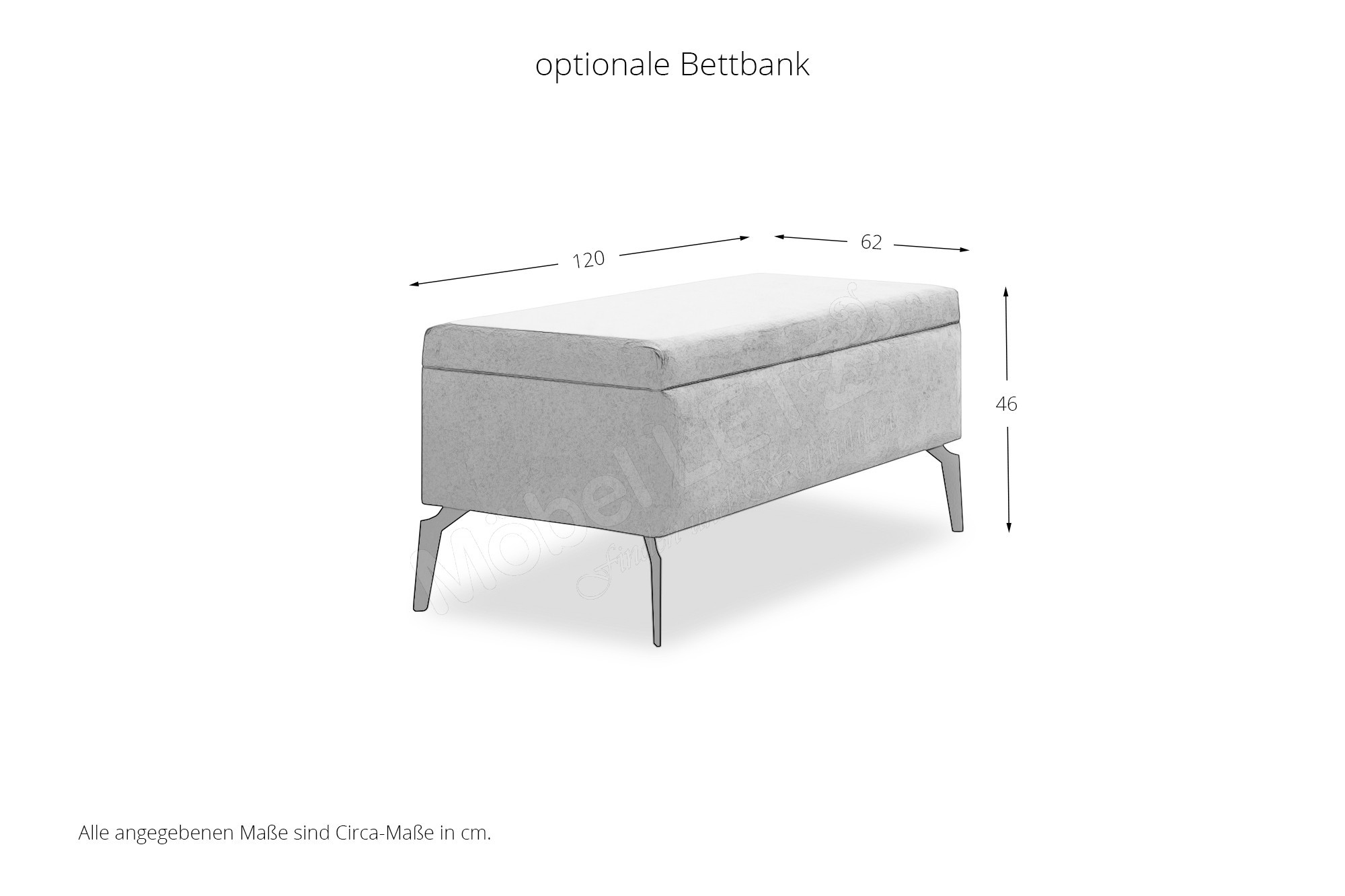 Bettbank Como - stoffbezogener Korpus auf schwarzen Metallfüßen, Stauraum inklusive (mit Gasdruckfeder), Innendekor weiß, ca. BHT: 120/46/62 cm