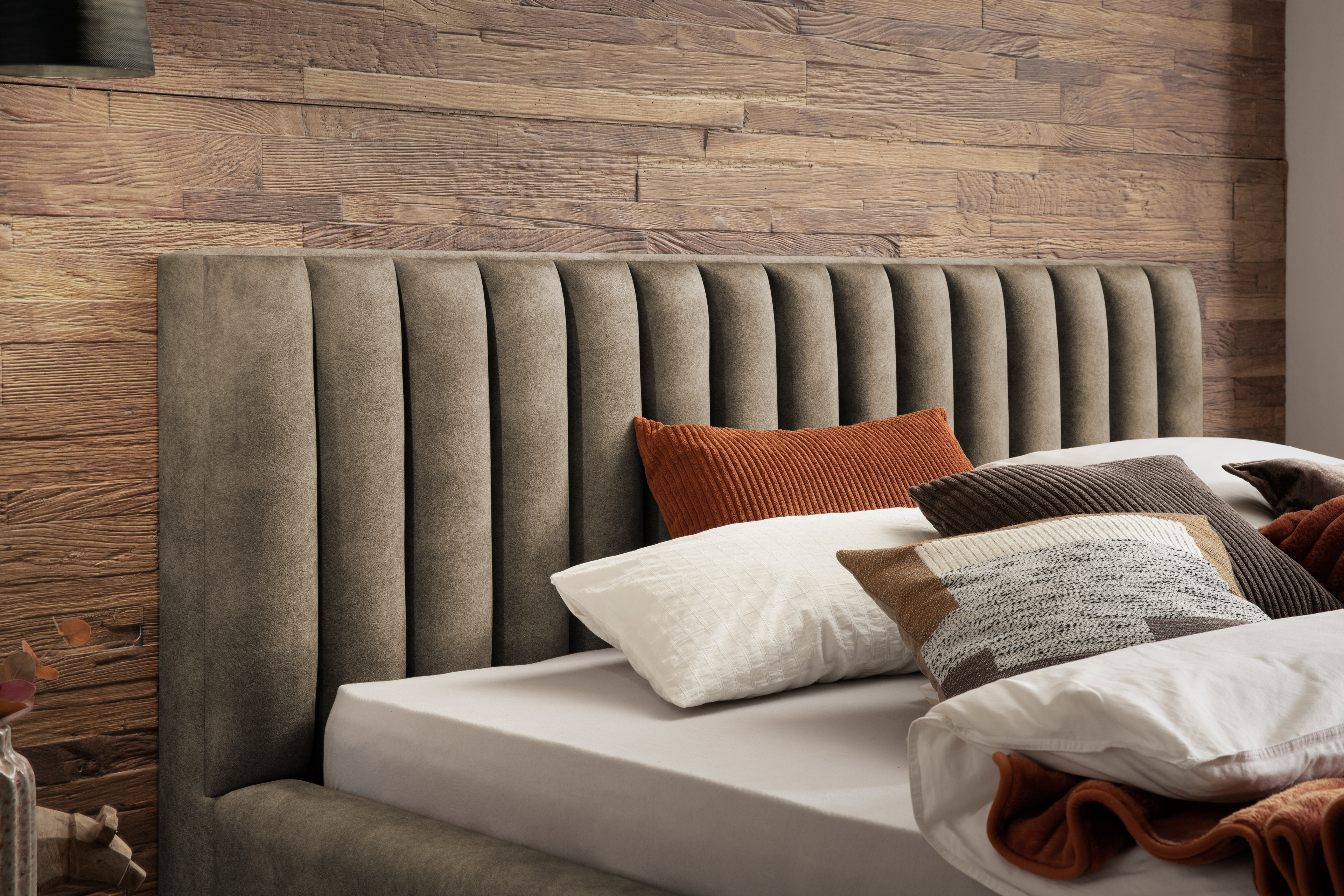 Inspiriert von der idyllischen Stadt am Comer See in Italien, weckt das Polsterbett Como von DONE.® Erinnerungen an laue Sommerabende, glitzerndes Wasser und das sanfte Gefühl von Leichtigkeit. Zarte Formen, eine anschmiegsame Polsterung und fein ausgewählte Materialien schaffen eine Atmosphäre, die Geborgenheit und ein Hauch von italienischer Sinnlichkeit vereint. Wie ein verträumter Spaziergang entlang der Uferpromenade von Como schenkt Ihnen dieses Polsterbett Momente der Ruhe und des Innehaltens. Das weich gepolsterte Kopfteil lädt dazu ein, sich anzulehnen, den Alltag hinters sich zu lassen und in Gedanken in ferne Urlaubswelten zu reisen. Gleichzeitig bringt das elegante Design eine elegante, stilvolle Note in Ihr Schlafzimmer. Ein besonderes Detail: Das Bett ist in verschiedenen Bezugsqualitäten sowie Farben unter dem Menüpunkt „Wunschbezug“ erhältlich und lässt sich so ganz nach Ihrem persönlichen Geschmack gestalten – von sanften, zarten Nuancen bis hin zu ausdrucksstarken Erdtönen, die Ihre individuelle Wohnwelt unterstreichen. Mit Polsterbetten von DONE.® holen Sie sich ein Stück italienische Lebensfreude in Ihr Zuhause – ein Ort, an dem Träume beginnen und jeder Abend ein wenig wie Urlaub wirkt.