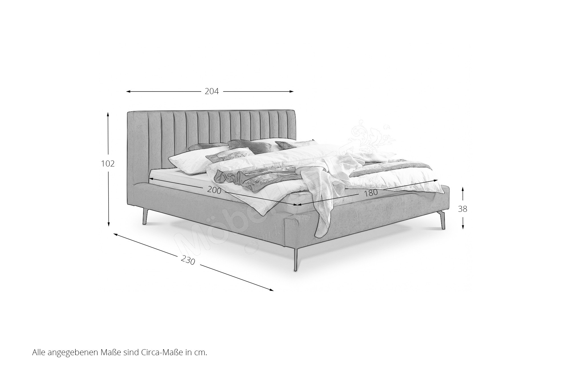 - 1 x B530-180 - Polsterbett, ca. BHT: 204/102/230 cm