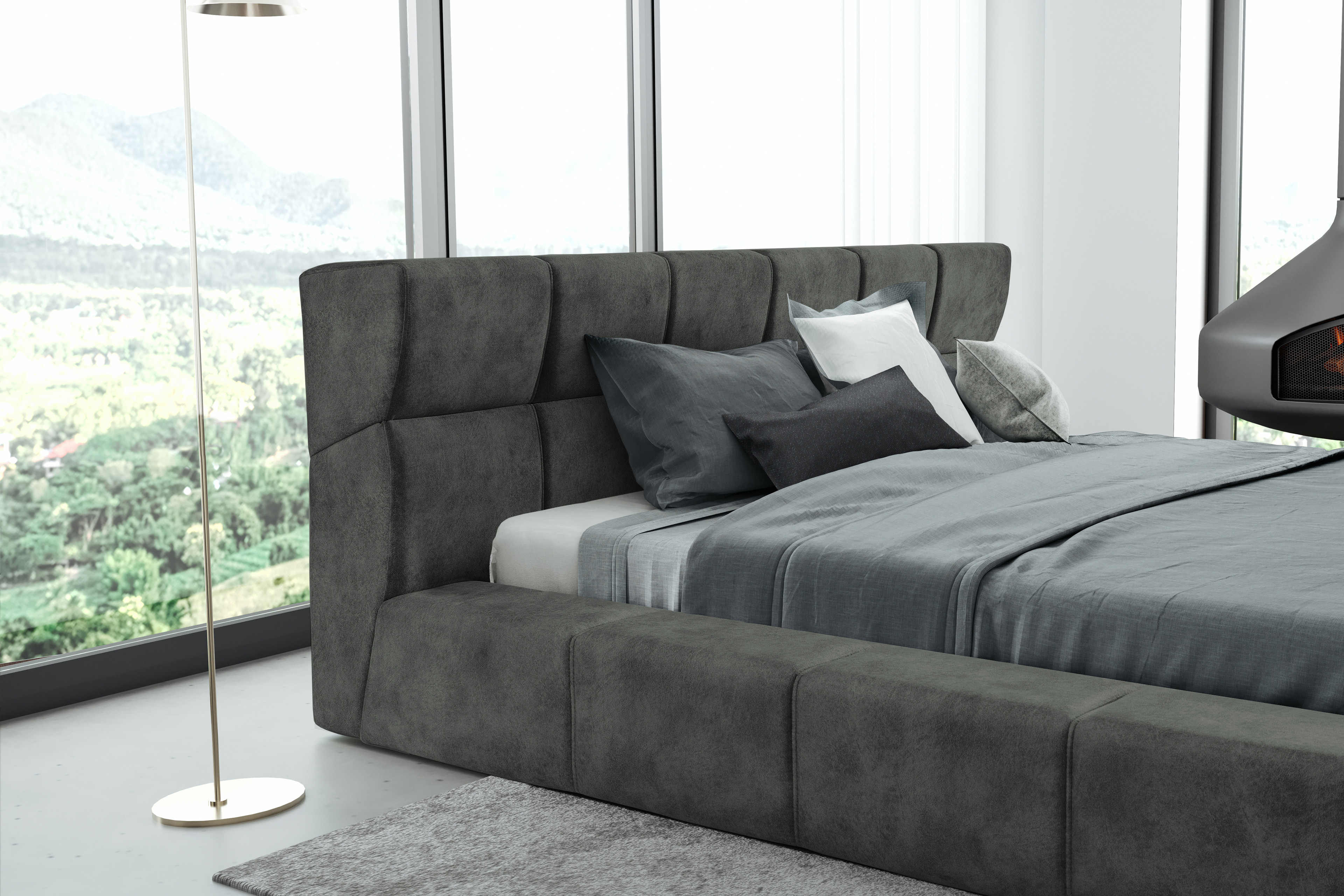 Polsterbett anthracite von DONE.® - Modell Leonardo-Dream aus der Kollektion Designbetten „Leonardo-Dream“ - meisterhaftes Design für einen malerischen Schlaf