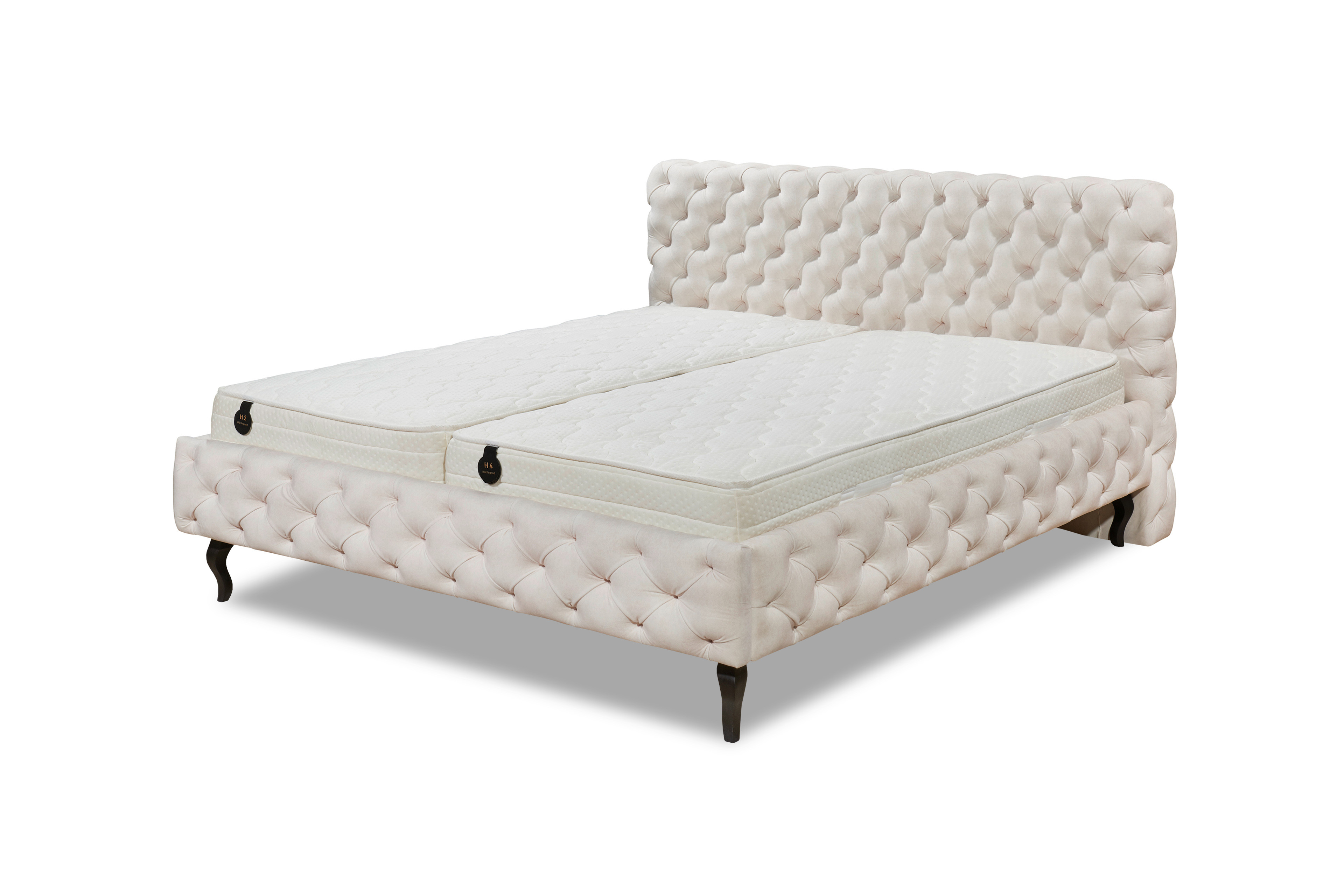 - Bettrahmen: 3-seitig, mit Chesterfield-Steppung