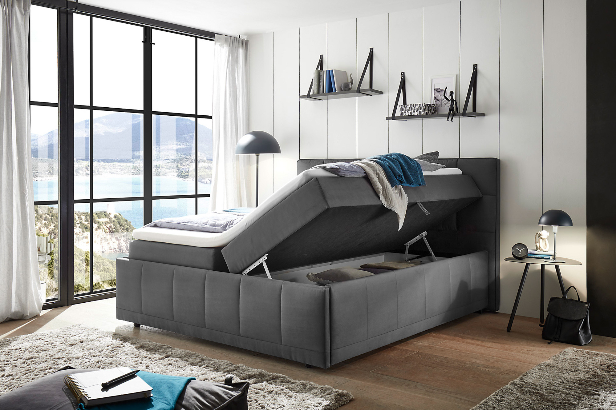 - Funktion: Bettkasten, seitlich zu öffnen