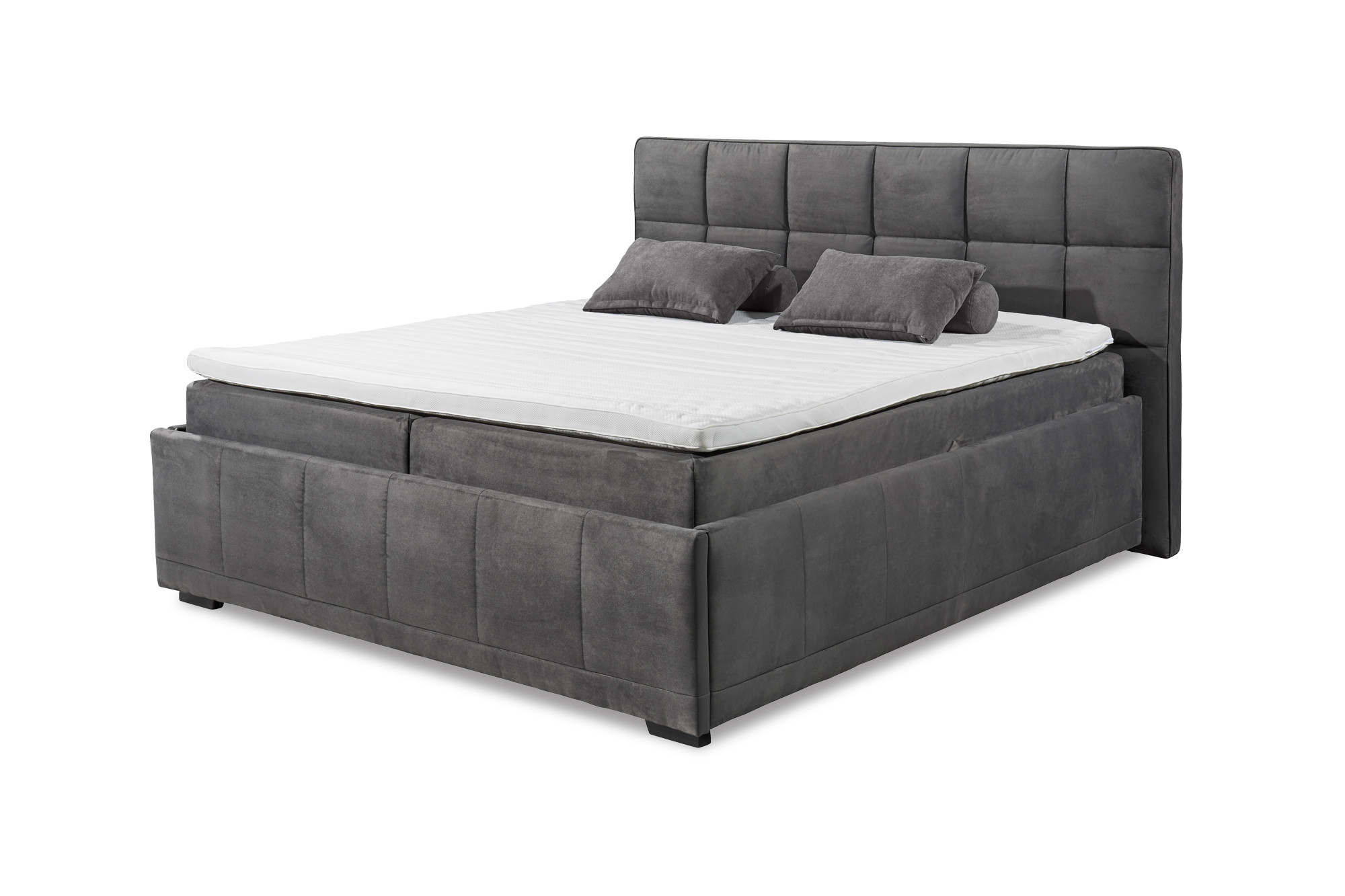 Boxbett Fulham von ED-Lifestyle – vollkommene Harmonie und pure Gemütlichkeit. Ein besonderes Merkmal des Bettes ist das markante Kopfteil mit der bezaubernden Kastensteppung. Es ist nicht nur ein gelungener Blickfang in jedem Schlafzimmer, sondern auch eine bequeme Anlehnmöglichkeit beim Lesen der Abendlektüre. Der angenehm weiche Microfaser-Bezug in Anthrazit und die klare Formgebung passen sich wunderbar dem modernen sowie klassischen Einrichtungsstil an. Auch in Sachen Komfort ist das Polsterbett sehr anpassungsfähig: Sein exzellentes Standard-Boxsystem setzt sich aus drei Ebenen zusammen, die zusammen einen unbeschreiblich wohltuenden Schlafkomfort garantieren. Angefangen bei den Boxen, welche mit einem geräumigen Bettkasten eine wunderbare Grundlage für erholsame Nächte und ausreichend Stauraum zu Verfügung stellen. Die aufliegenden Tonnen-Taschen-Federkern-Matratzen sorgen im Härtegrad 2 für ein herrliches Liegegefühl. Den perfekten Abschluss eines unvergesslichen Schlaferlebnisses bietet der HR-Topper, welcher trotz seiner samtweichen Eigenschaft eine ideale Stützfähigkeit besitzt. ED-Lifestyle Polsterbetten - für ein schönes Zuhause.