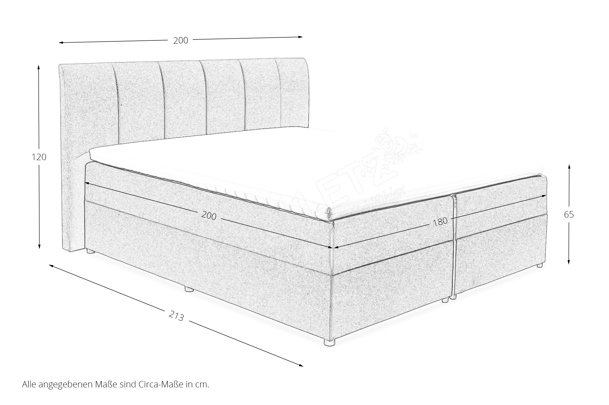 ca. BHT: 200/120/213 cm (mit Überstand am Kopfteil)