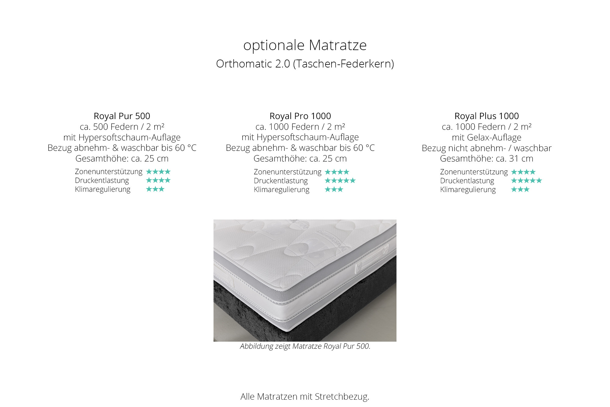 ca. 200 x 200 cm - optionale Matratze - Orthomatic 2.0: