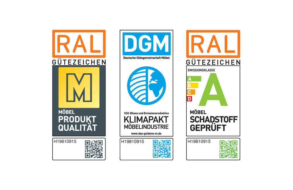 - Bettrahmen: kubisch mit Schichtholzrahmen, Innen anthrazit, variable Liegehöhe von ca. 7 cm durch seitliche Beschläge