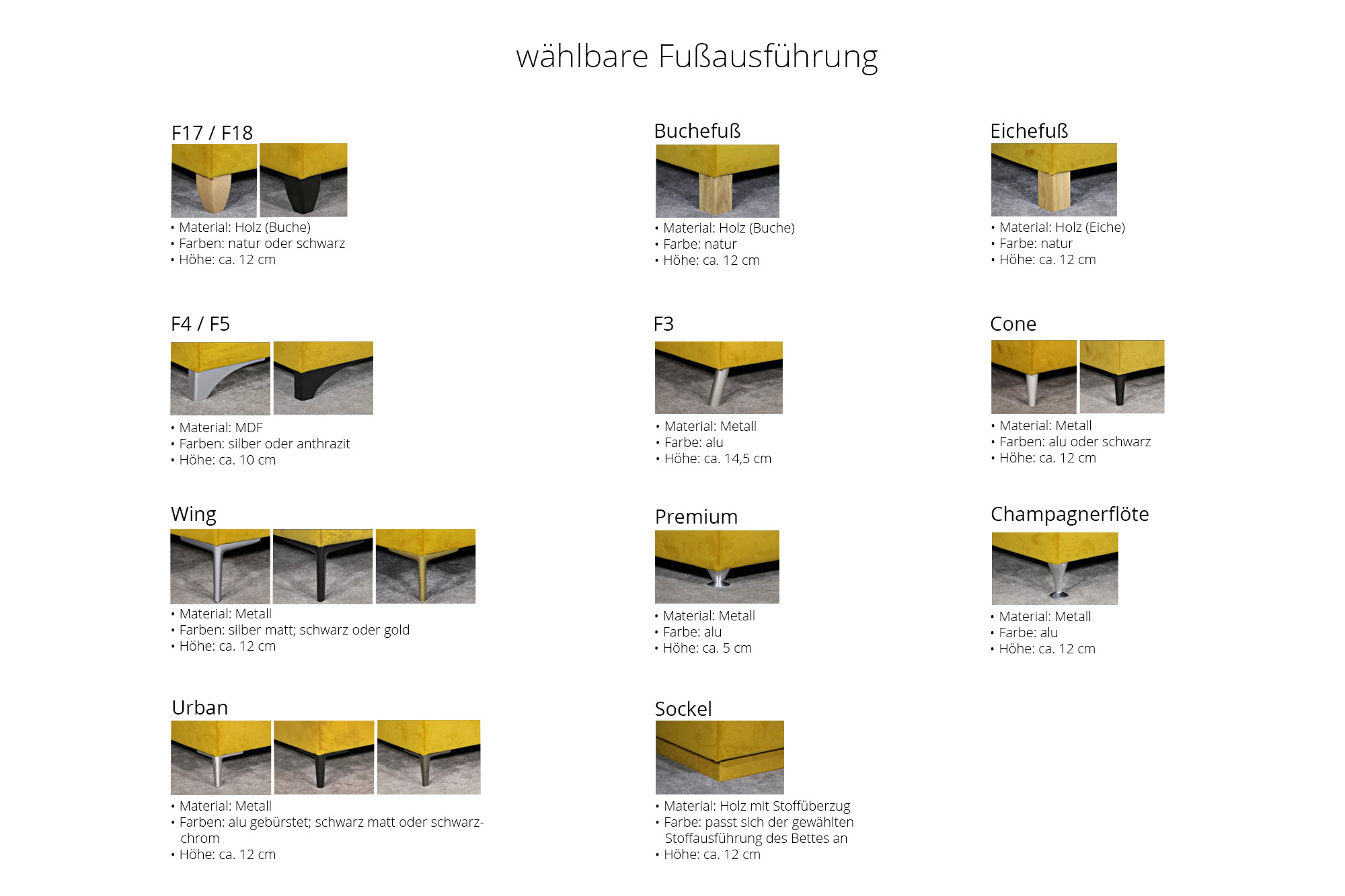 Hinweis! Der Sockel passt sich der gewählten Stoffausführung des Bettes an.