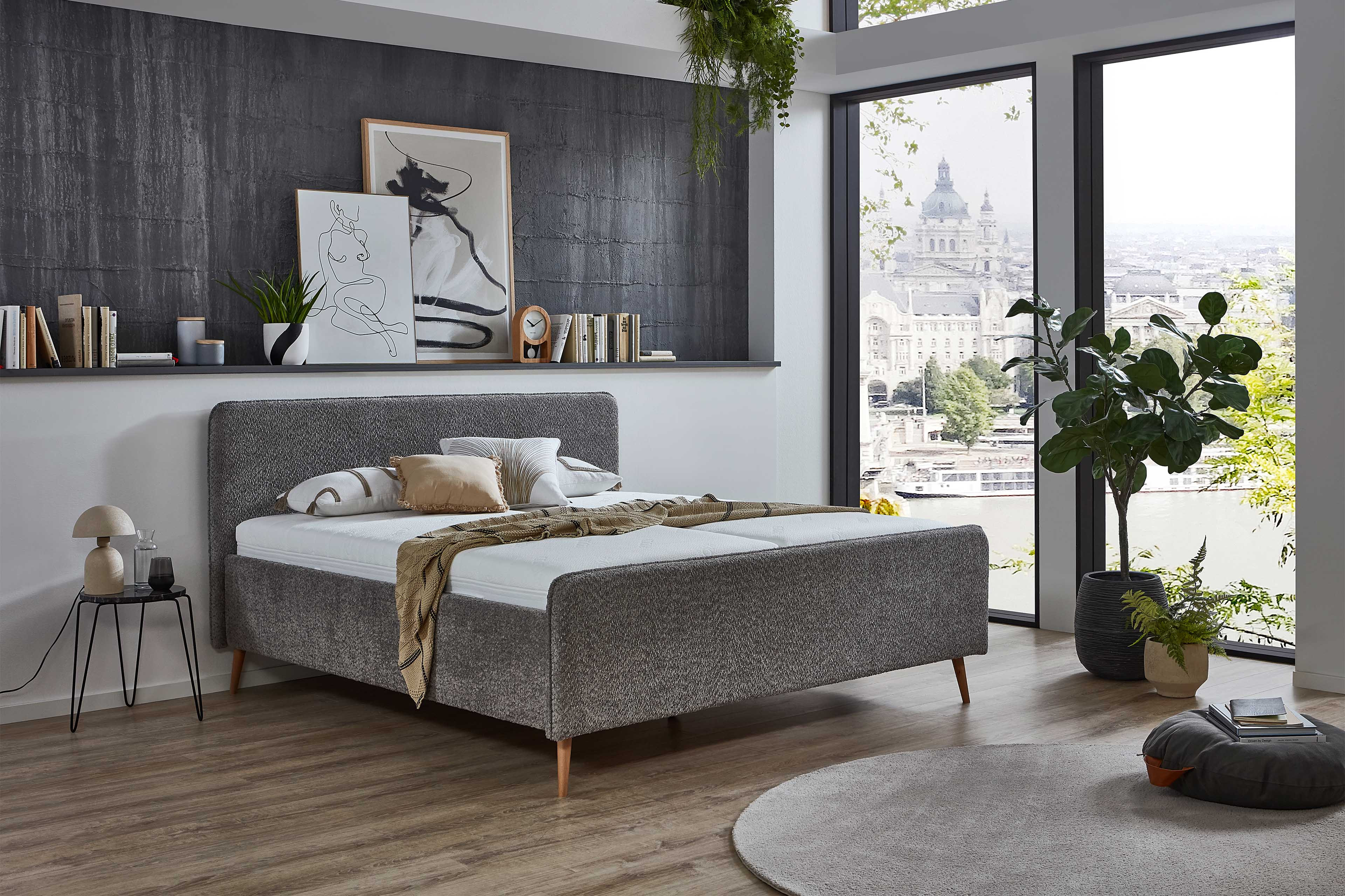 Sie suchen ein einfaches, aber dennoch einladendes Bett mit gemütlichem Charme, das sich wundervoll harmonisch in Ihre vorhandene Schlafzimmereinrichtung eingliedert? Dann haben wir hier genau das Richtige für Sie: Salida-PB150 von Sun Garden. Das Polsterbett empfängt Sie mit einem kuschelig weichen Chenille-Flachgewebestoff und schlanken, konischen Buchenholzfüßen. Der graue Bezug hält sich dezent zurück und lässt sich perfekt mit allen erdenklichen Farbpaletten kombinieren, so können Sie zum Beispiel durch einen Wechsel der Zierkissen oder Bettwäsche im Handumdrehen frischen Wind in Ihr Interieur bringen, ohne dafür die Möbel selbst auszutauschen. Ein glattes Kopf- sowie Fußteil mit dekorativem Stehsaum bilden den unaufdringlichen Blickfang bei diesem Bett, welches in drei Größen erhältlich ist. Benötigen Sie dazu auch gleich neue Lattenrahmen und Matratzen? Dann werden Sie ebenfalls hier auf dieser Seite fündig. Polsterbetten von Sun Garden – erschwinglicher Schlafkomfort mit einer großen Vielfalt an modernen Designs für Ihr Zuhause.