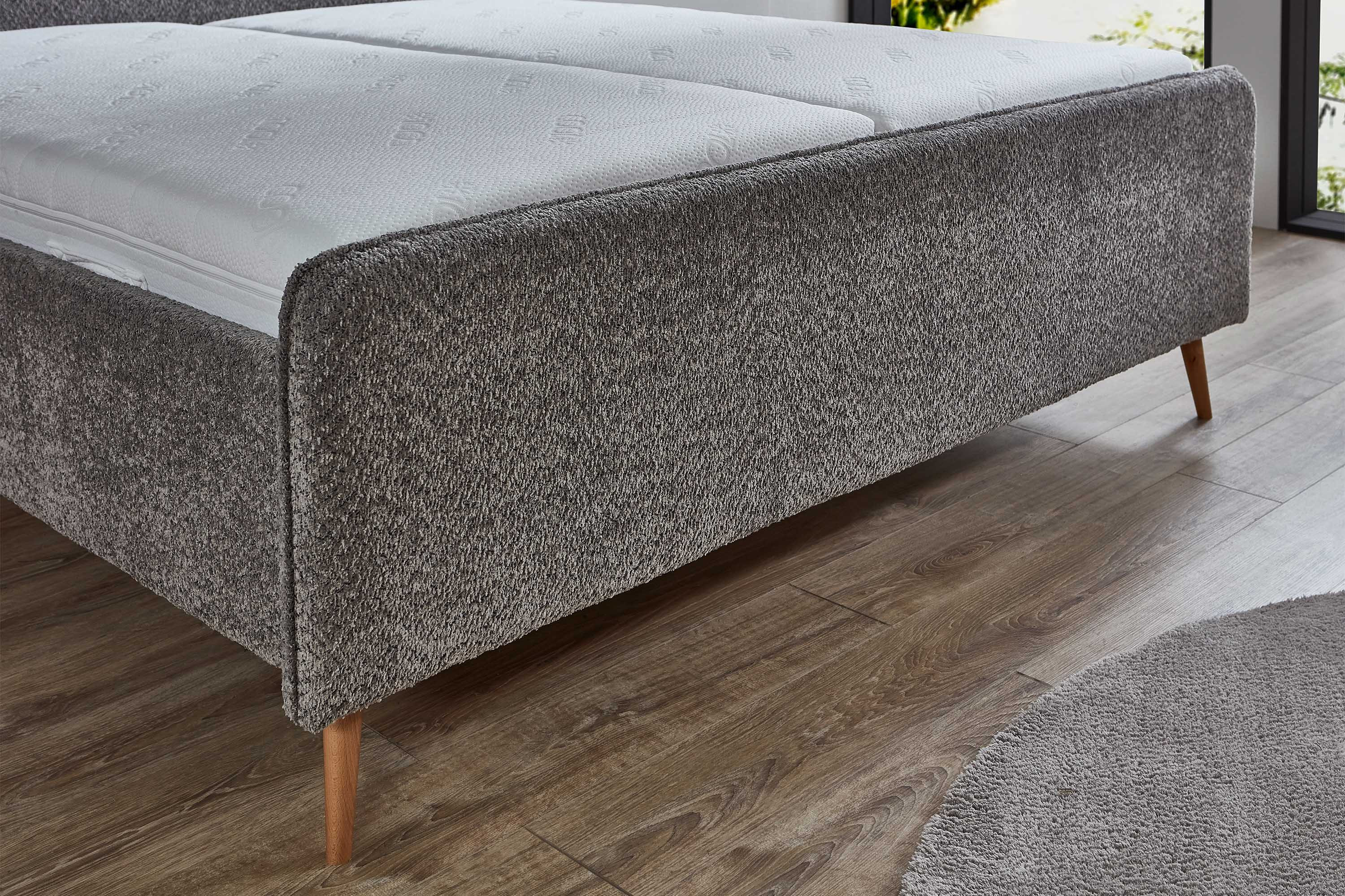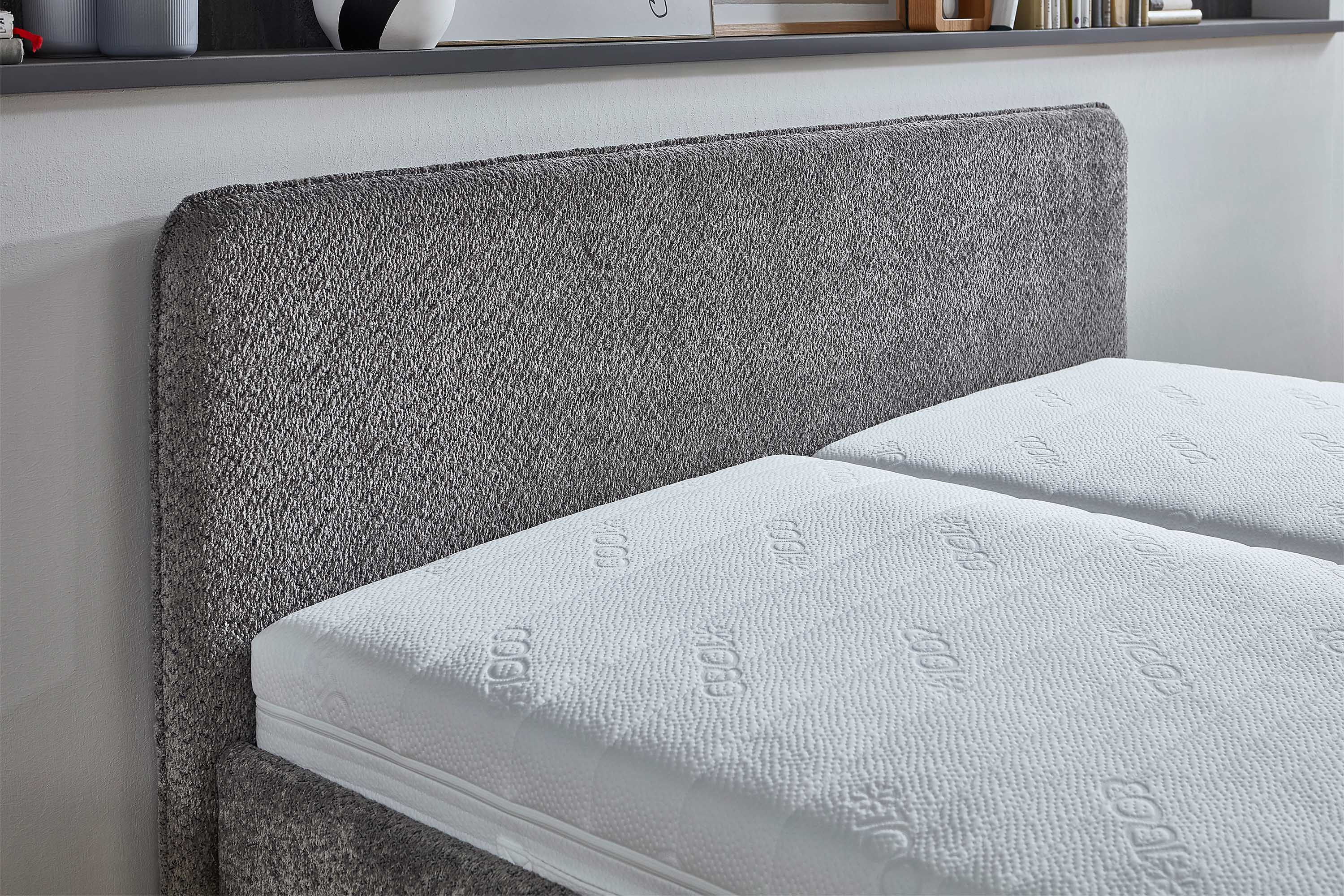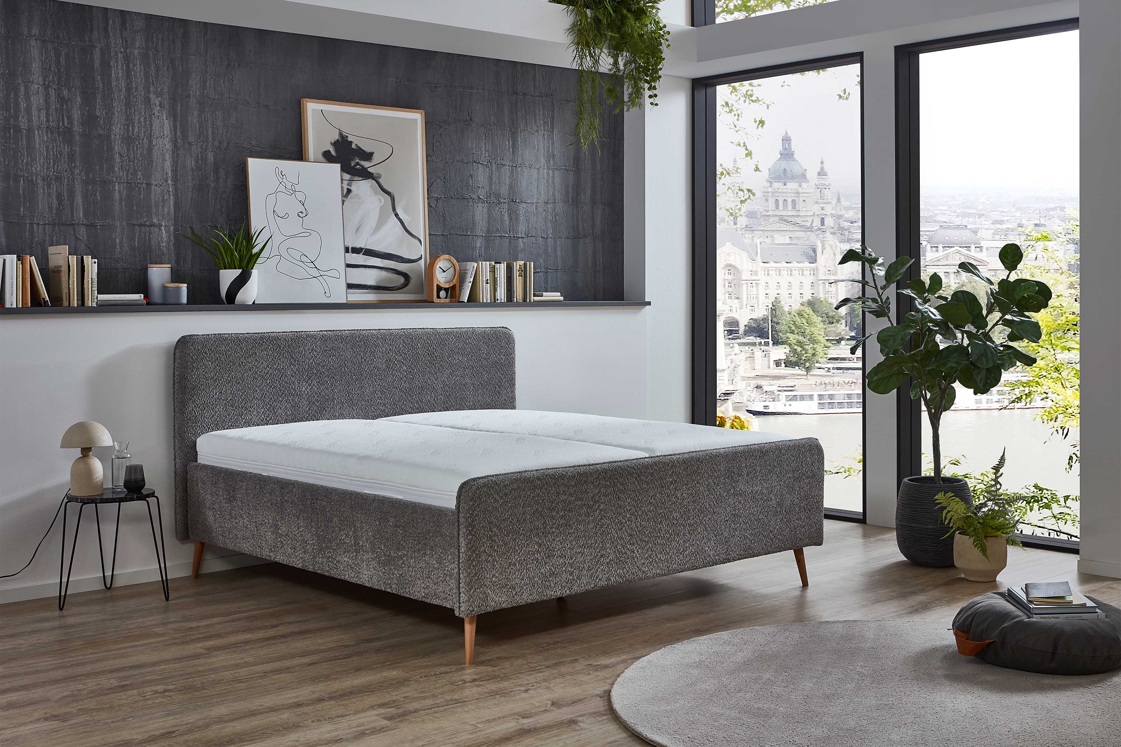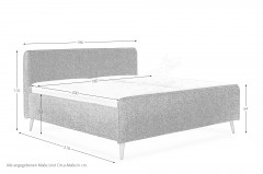 - Bettrahmen: umlaufender, fester gepolsterter Rahmen, bezogen mit Möbelstoff, höhenverstellbare Lattenrost-Auflageleiste (2 wählbare Höhen)