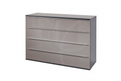 Sie sind auf der Suche nach einem Möbelstück, welches nicht nur praktisch ist, sondern überall eine gute Figur macht? Dann entdecken Sie die Glassystem-Kommode von Disselkamp, welche Funktionalität und Eleganz auf harmonische Weise kombiniert. Die Kollektion wird geprägt von modernen Glasfronten, die auf einen Korpus in gedeckten Farben oder wahlweise auch auf Furnier treffen. Geben Sie Ihrem Raum den letzten Schliff mit einem Sideboard, das in einem coolen Mix aus basaltfarbenem Lack und seidengrauem Glas erstrahlt. Vier leichtgängige, breite Schubladen stellen ausreichend Stauraum zur Verfügung, um sämtliche Kleidungsstücke, Gegenstände oder Dekorationsobjekte unterzubringen. Richtig komfortabel wird es dank der eingebauten Funktionen wie Vollauszug, Selbsteinzug und Dämpfung. Mit unseren Zusatzoptionen können Sie die Ausführungen ganz nach Ihrem Geschmack anpassen und so Ihre ganz eigene Version der Schlafzimmer-Kommode kreieren. Glassystem von Disselkamp - der perfekte Partner für Ihr Schlafzimmer.