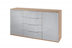 Mit ihrer Vielseitigkeit und den cleveren Details bringt die Superkombikommode von Disselkamp frischen Wind in Ihre vier Wände und macht dabei eine richtig gute Figur. Bei der Kollektion Glassystem verschmelzen Kastenmöbel und elegante Glasfronten zu einem harmonischen Duo, das zeigt, wie optimal Funktion und Design Hand in Hand gehen können. Unser Angebot präsentiert sich in einem Korpus aus edlem Balkeneiche-Furnier und einer modernen Front aus seidengrauem Glas, die das Ganze stilvoll abrundet. In drei Bereiche gegliedert, verfügt das Möbelstück über ein mittiges Schubkastenabteil mit vier Auszügen sowie zwei Türenabteile mit jeweils zwei Fachböden. So bietet es Ihnen reichlich Platz für all die Dinge, die Sie blitzschnell zur Hand haben wollen. Ob im Schlaf-, Wohn- oder Arbeitszimmer, das Sideboard ist ein cleverer Ordnungshüter, der genau dort zur Stelle ist, wo Sie ihn brauchen. Glassystem von Disselkamp – hier vereinen sich Funktionalität und Stil zu einer perfekten Einheit.