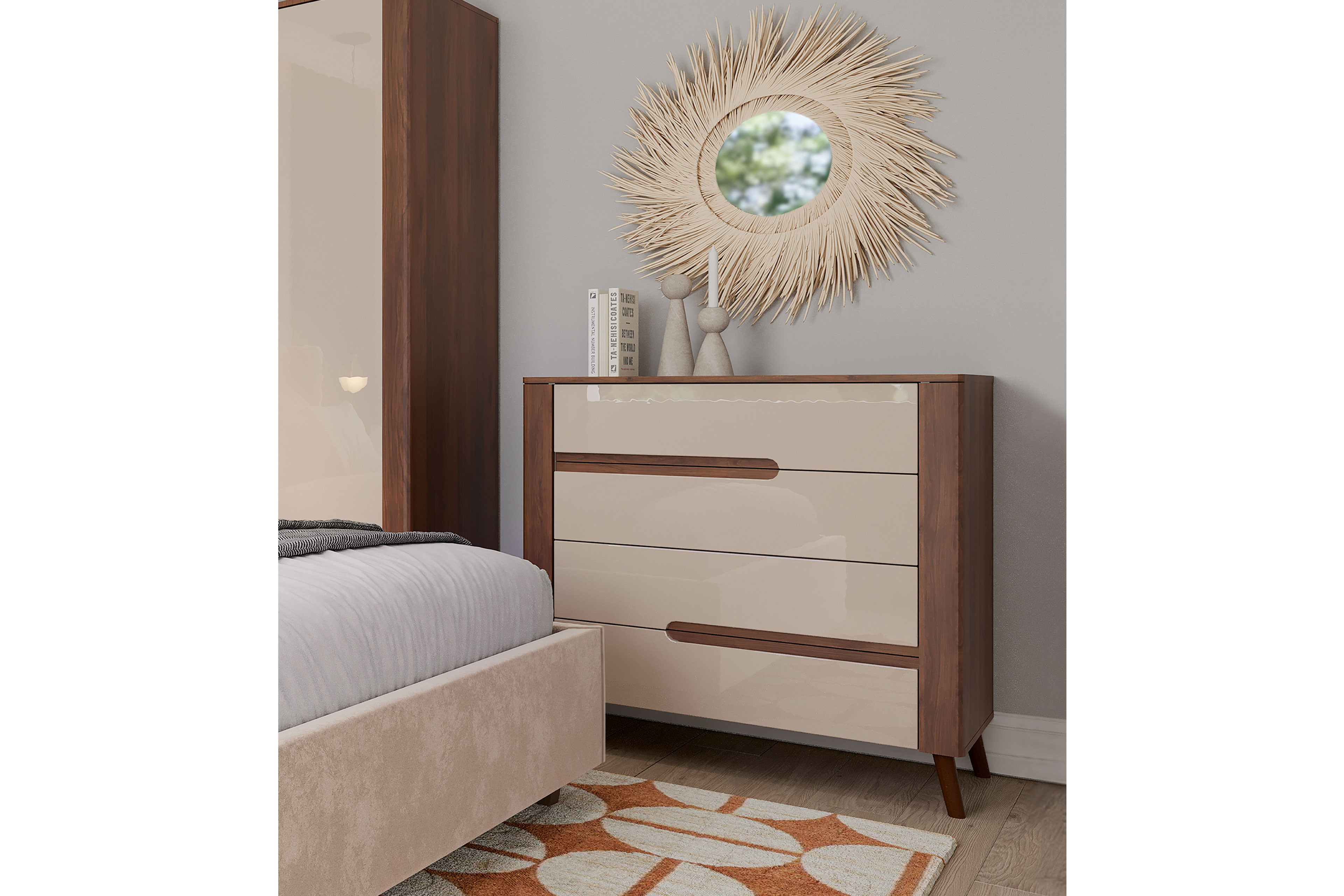 Highboard von Meble Wojcik - Modell Amarillo-sleeping - mit 4 Schubladen Amarillo-sleeping - für Möbel, die Ihrem Schlafzimmer Leben und Charakter einhauchen.