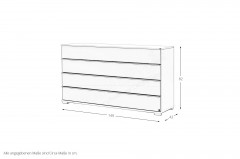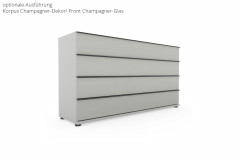 - Kommode: mit 4 Großraum-Auszügen, mittig geteilt