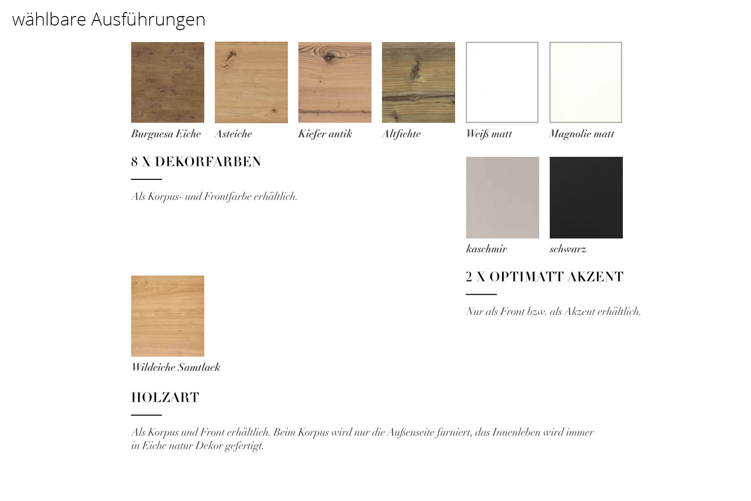 - Korpus/ Front: Wildeiche Samtlack Furnier