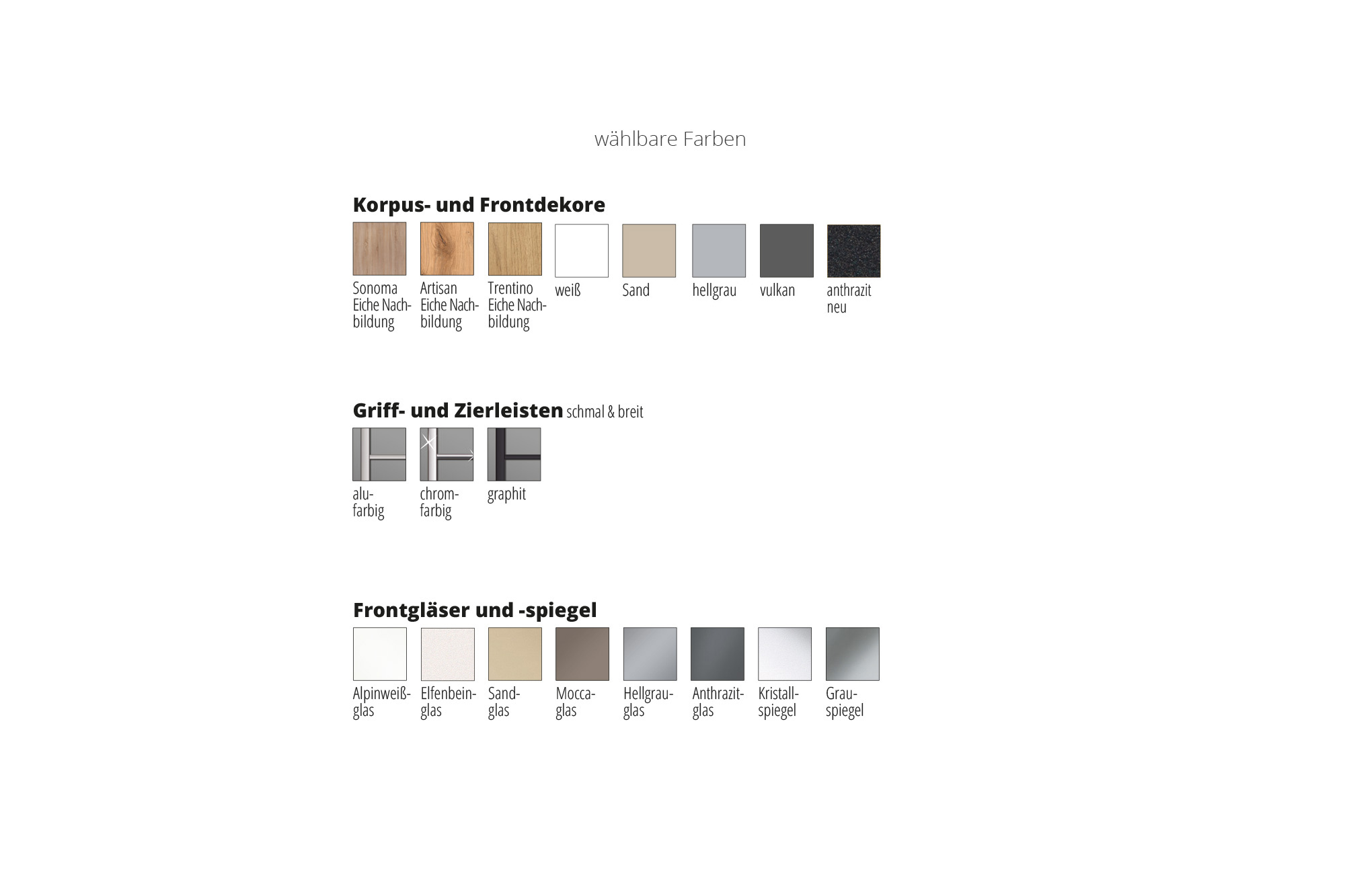 Bitte berücksichtigen Sie, dass es zu eventuellen Abweichungen bei der Darstellung der abgebildeten Farben, Holznachbildungen, Spiegel und Gläser kommen kann. Diese resultieren aus den unterschiedlichen technischen Bedingungen. So ist es möglich, dass die Farben der dargestellten Farbmuster beispielsweise durch Ihre individuellen Monitor- bzw. Displayeinstellungen und die reellen Farben durch unterschiedliche Lichtverhältnisse und Reflexionen von der Abbildung in unserem Online-Shop abweichen können. Bei unterschiedlichen Beleuchtungs- und Blickwinkeln kann es zu einem optischen Farbwechsel kommen. Diese Eigenschaften sind warentypisch und stellen keinen Beanstandungsgrund dar.
