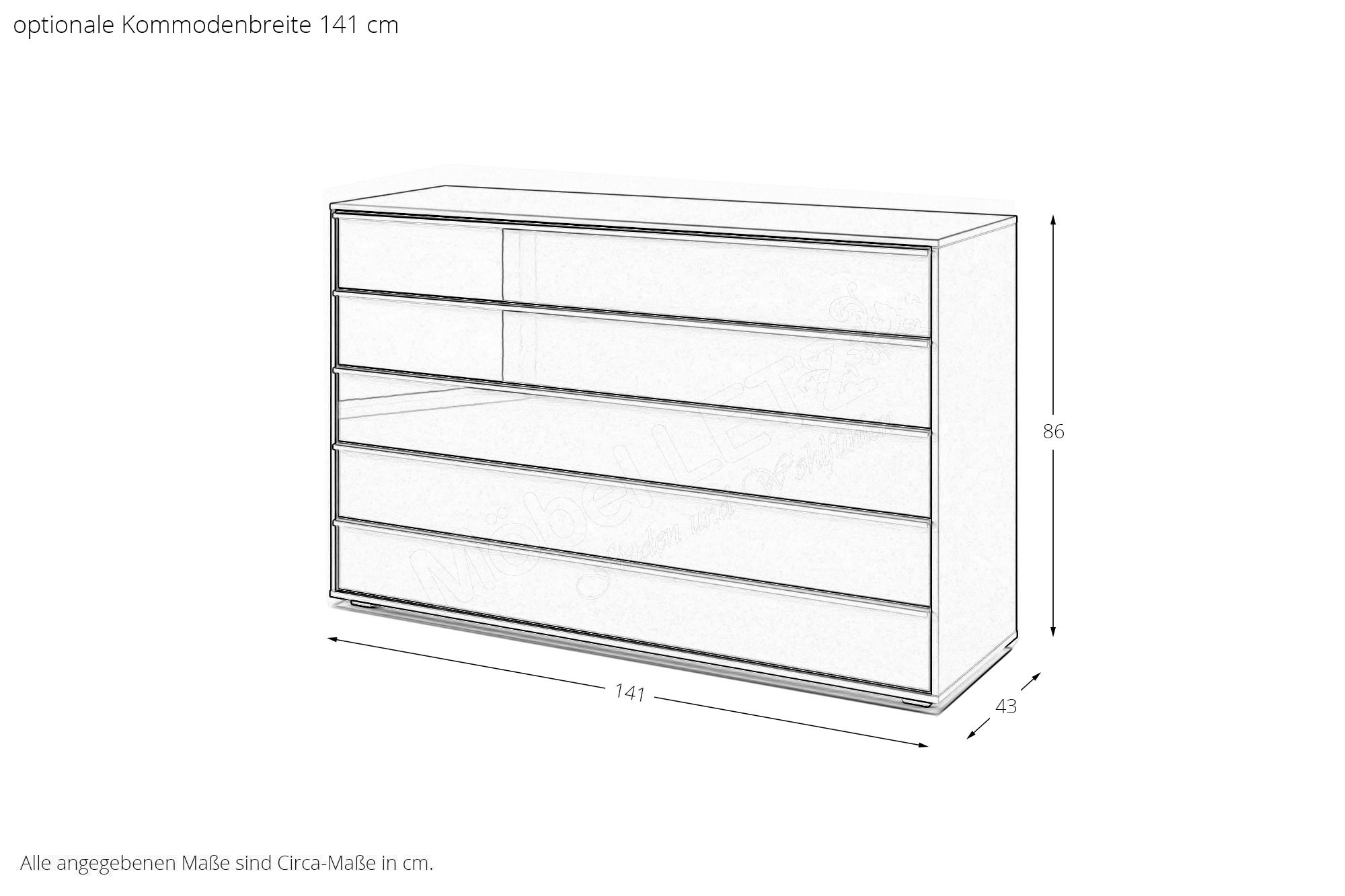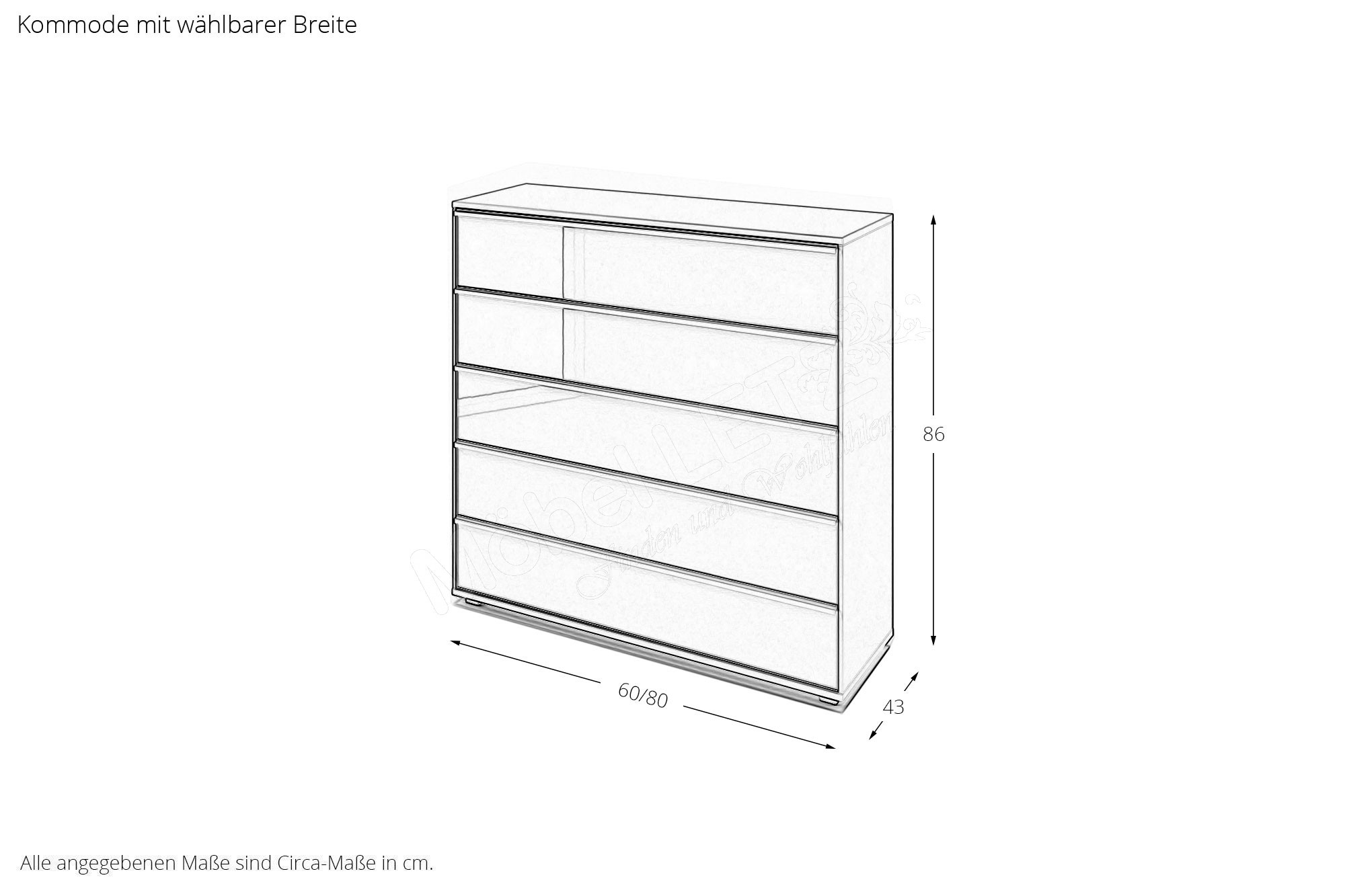 - Kommode: mit 5 Schubladen