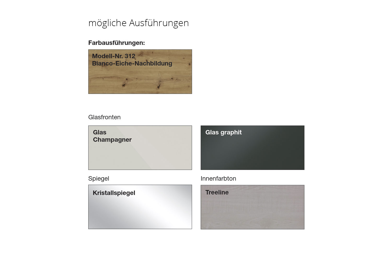 Die Wiemann Kombikommode aus dem Schlafzimmer-Modell Sevilla ist etwa 120 x 86 x 43 cm groß und zeigt sich in einer modernen Kombination aus einer ressourcenschonenden Holznachbildung und edlen Glasauflagen. Auf der linken Seite des Sideboards befindet sich ein Türelement, das einen Fachboden zur Unterteilung des Innenraums beherbergt. Rechtsseitig wurden fünf Schubladen positioniert, die eine sortierte Unterbringung verschiedener Textilien, Modeaccessoires oder auch diverser Alltagsutensilien ermöglichen. Mithilfe der Zusatzoptionen kann die Optik der Sevilla Kommode auch verändert werden, indem Sie bei Bedarf Ihre favorisierte Variante des Attributes Front auswählen. In der zugehörigen Modellübersicht finden Sie noch weitere Beimöbel sowie Kleiderschränke, Betten und Zubehör-Elemente. Wenn Sie sich einen Überblick über das Sortiment verschaffen möchten, können Sie direkt hier den Sevilla Typenplan öffnen.