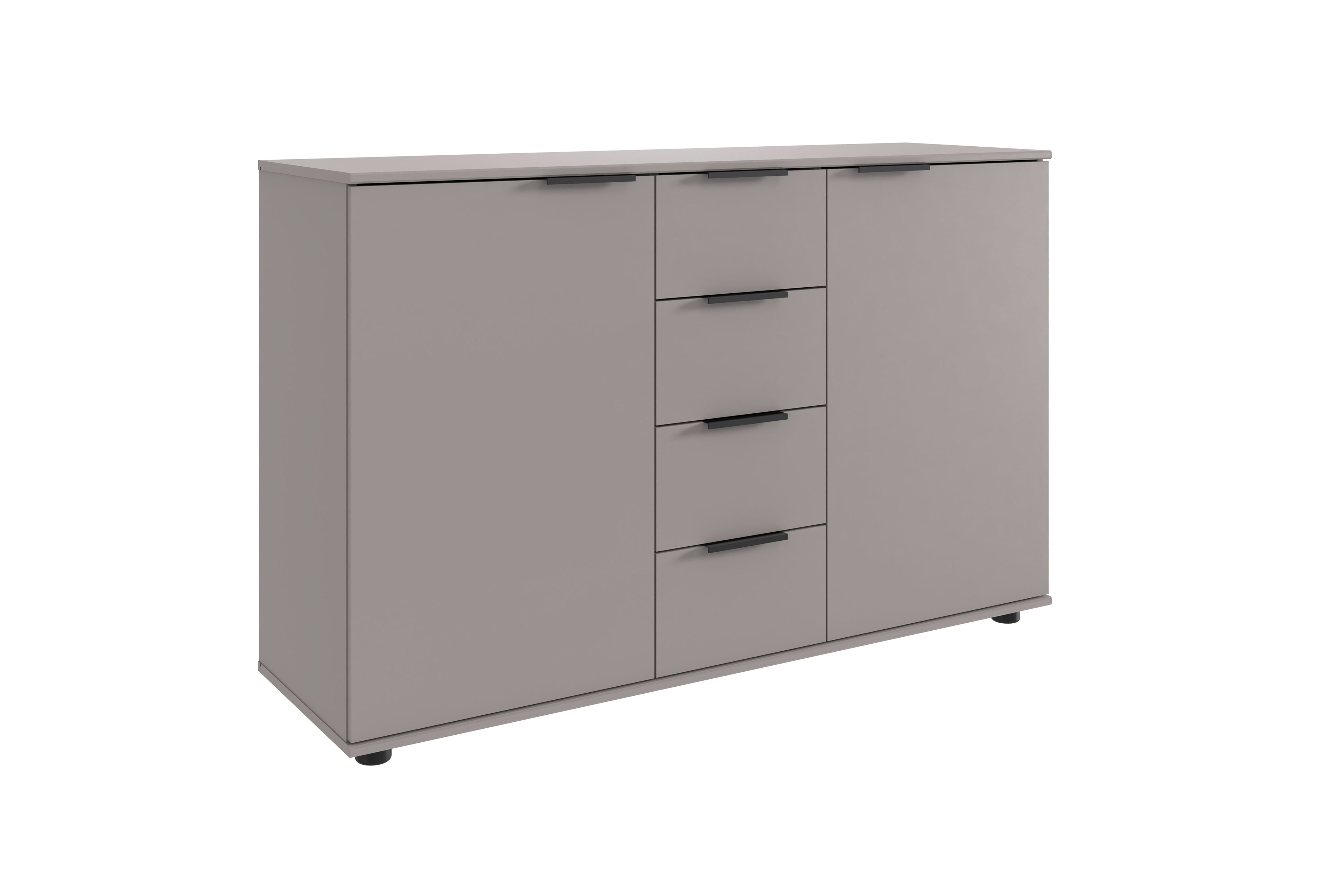 Erleben Sie mit der Wimex Kombikommode Tilburg, wie Ordnung und Ästhetik zu einem harmonischen Zuhause verschmelzen. Die Kommode misst ca. 130 cm in der Breite und etwa 83 cm in der Höhe. Damit ist die Kommode groß genug, damit Sie auch Ihre Kleidung, Accessoires und persönlichen Schätze stilvoll ordnen können. Links und rechts besitzt die Kommode Türen, hinter denen sich jeweils ein Einlegeboden verbirgt. In der Mitte finden Sie vier Schubkästen, die Ihre Kleinigkeiten sicher verwahren. Ob alltägliche Dinge wie die Post, Stifte und Co oder doch eher kleine Wäschestücke und Haushaltstextilien, hier findet alles seinen Platz und ist übersichtlich verstaut. Wählen Sie mit Saharagrau und Grafit aus zwei modernen, eindrucksvollen Farbtönen, wobei das sanfte, beige-anmutende Sahara Ihren Räumen eine warme Eleganz verleiht und sich mühelos mit Holz- und Metallakzenten kombinieren lässt. Grafit dagegen setzt starke, klare Akzente und verleiht Ihrem Schlafzimmer eine zeitlose, hochwertige Note. Und mit dem Konfigurator entdecken Sie noch weitere Möbelstücke aus der Wimex-Kollektion, die perfekt aufeinander abgestimmt sind. So schaffen Sie sich eine vollständige, stimmige Einrichtungslinie, die Ihr Zuhause zu Ihrem persönlichen Wohlfühlort macht.