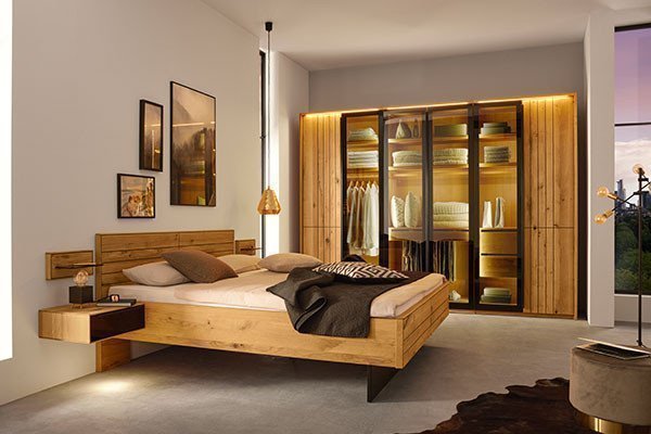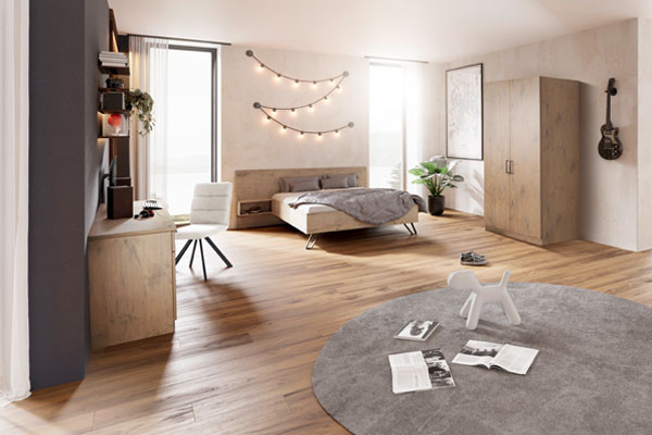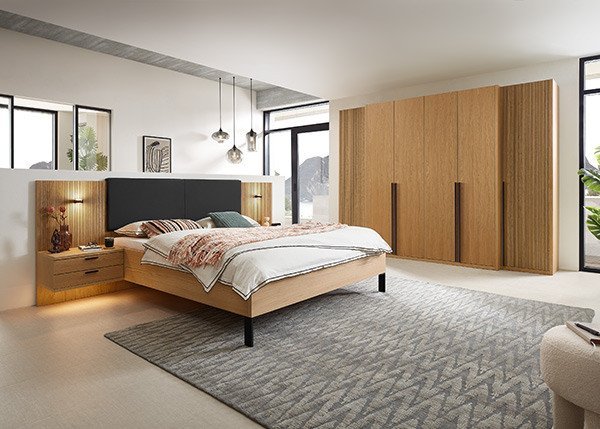 Schlafzimmer-Sets eignen sich besonders, um den Schlafbereich stimmig einzurichten. Ein Schlafzimmer-Set sorgt aufgrund harmonisch aufeinander abgestimmter Schlafzimmermöbel für ein angenehmes Ambiente sowie einen stimmigen Raumeindruck. Dadurch können Sie sich im Schlafzimmer rundum wohlfühlen und abschalten. Für die einheitliche Möblierung Ihrer Ruhezone stehen im Online-Shop von Möbel Letz Schlafzimmer-Sets von namhaften Marken, in unterschiedlichsten Stilrichtungen sowie verschiedenen Preisklassen zur Auswahl. Ein Schlafzimmer-Set beinhaltet in der Regel einen Kleiderschrank, ein Bett (ohne Lattenrost und Matratze) sowie meist die Nachtkonsolen. Das gewünschte Schlafzimmer-Set lässt sich durch weitere Möbel sowie passendes Zubehör einerseits erweitern, andererseits sind viele Möbel in verschiedenen Größen und Ausführungen verfügbar. Wählen Sie aus hochwertigen Hölzern, wie Eiche, Buche, Kiefer oder Zirbe, oder entdecken Sie die umfangreiche Farbauswahl der Schlafzimmer-Sets. Sparen Sie sich die zeitaufwendige Suche nach zueinanderpassenden Schlafzimmermöbeln, denn der Kauf eines Schlafzimmer-Sets beschert Ihnen eine ansprechende, einheitliche Schlafzimmereinrichtung.