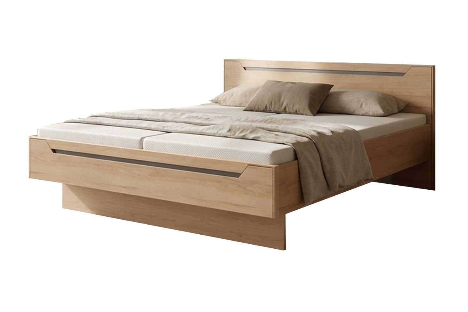 - Bettkopfteil, Bettseiten und Fußteil sind aus durchgehenden Holzlamellen