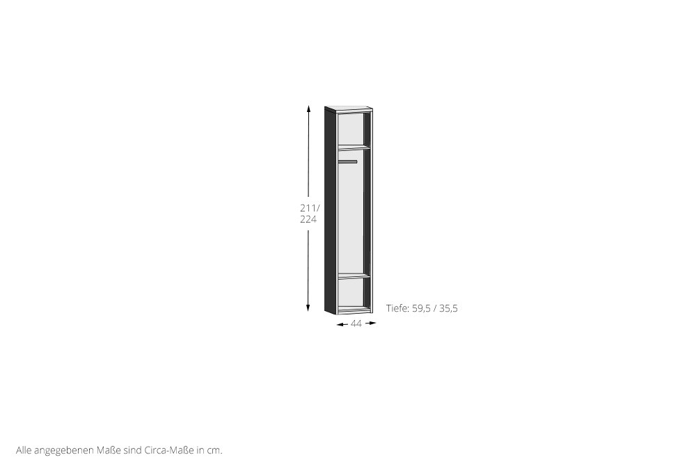 - Innenausstattung: mittleres Element mit 1 Einlegeboden + 1 Kleiderstange