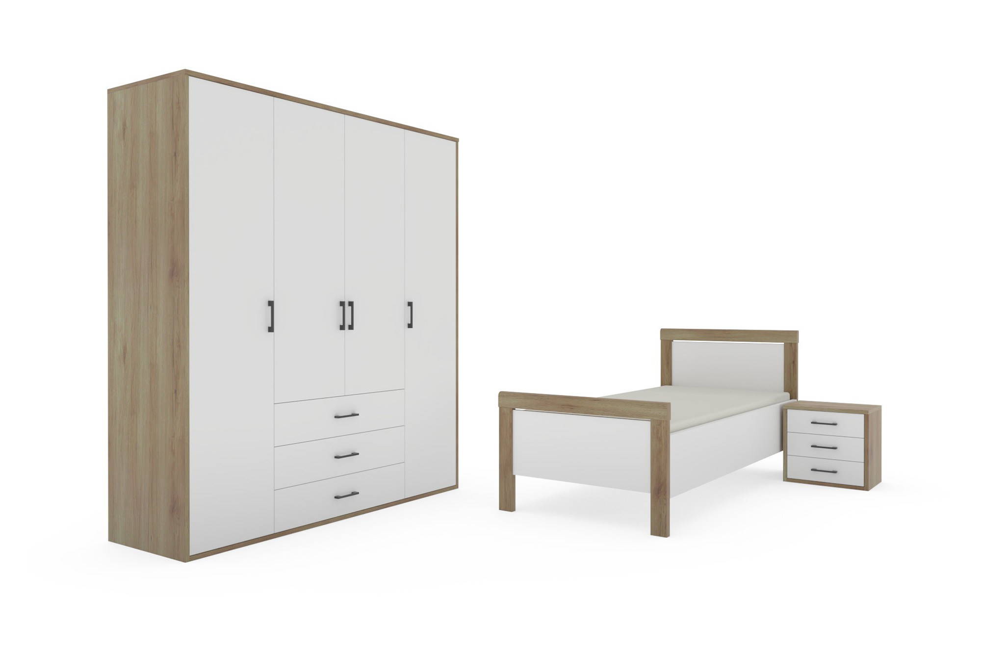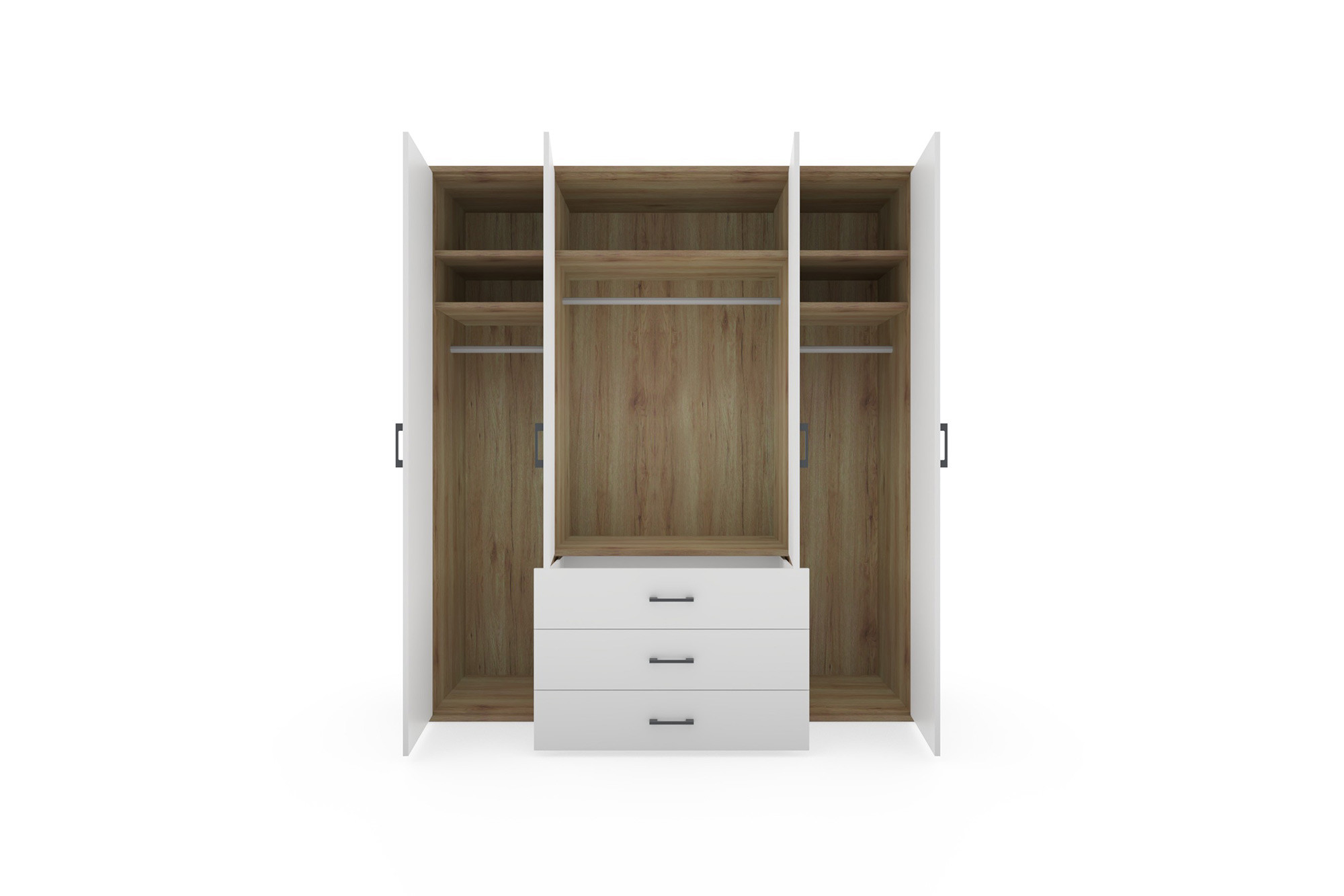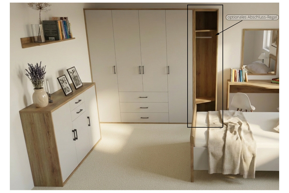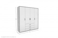 - Kleiderschrank: 4-türig mit 3 Schubkästen