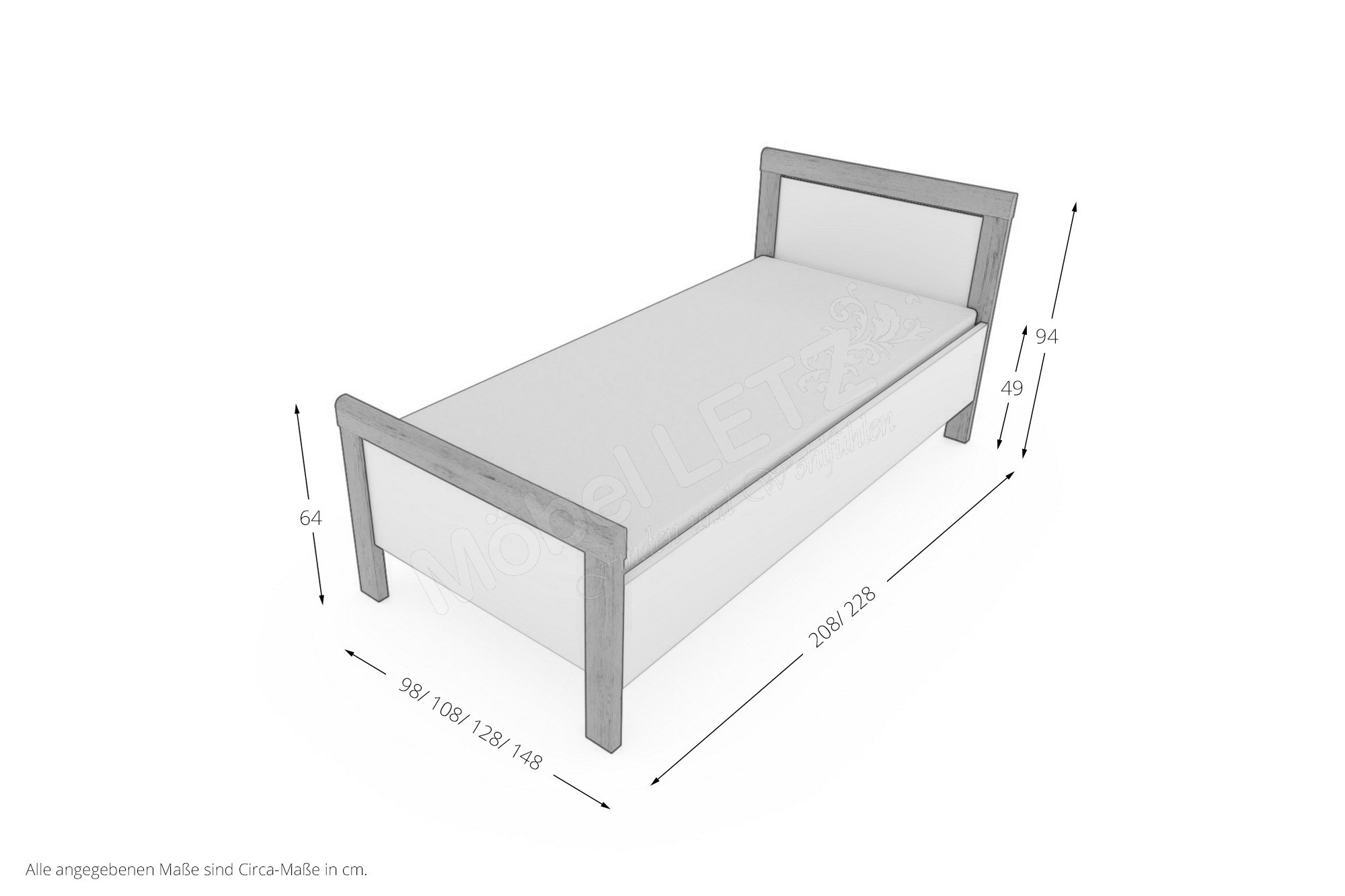 - Kopfteilhöhe: ca. 94 cm