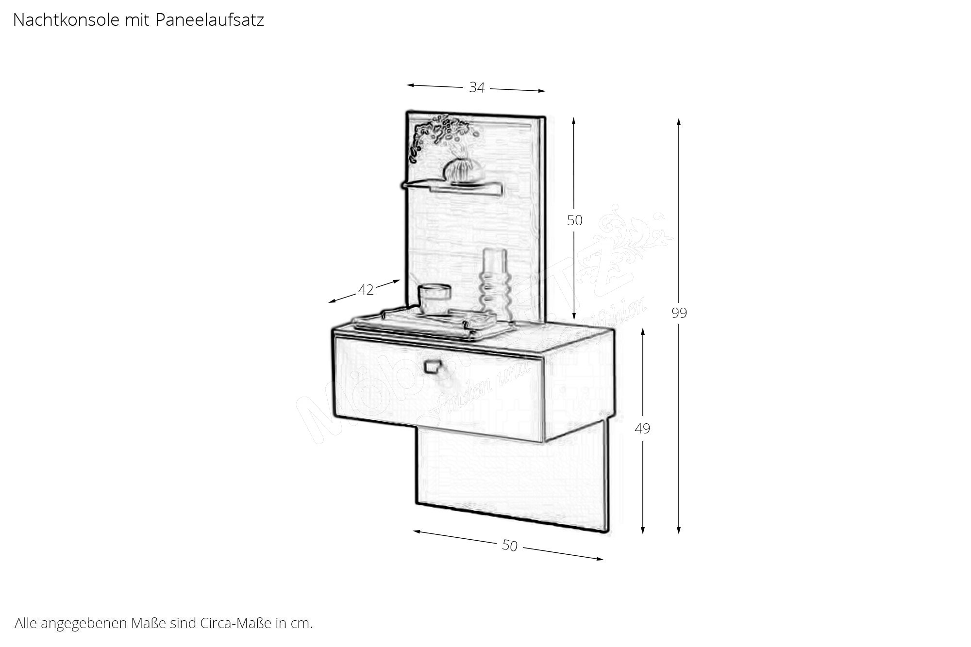 (ca. cm) | Nachtkonsolen mit Paneelaufsatz je