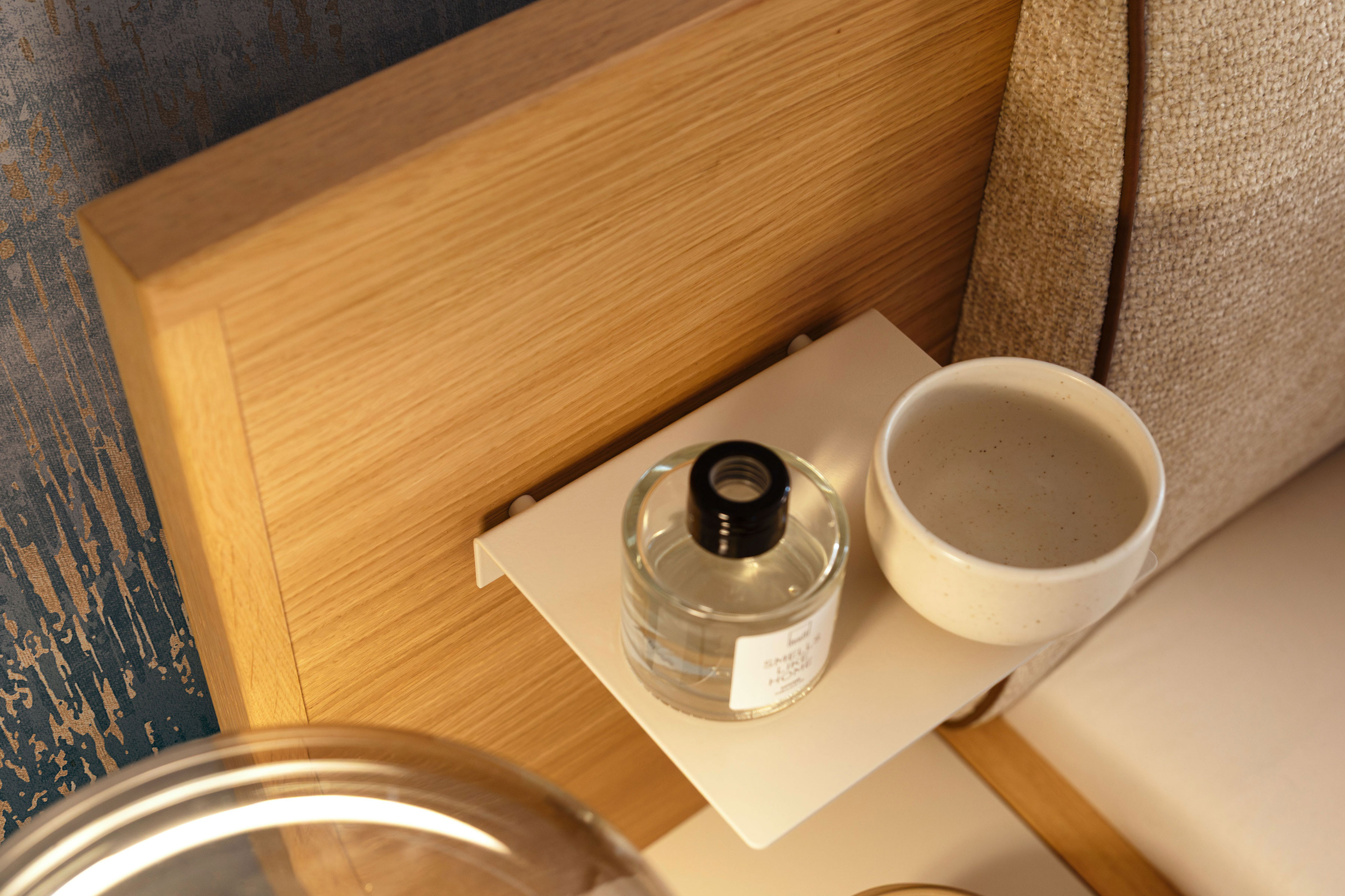 - Nachtkonsolen: jeweils mit Aufsatz-Paneel inklusive kleinem Ablageboden in Champagner-Dekor