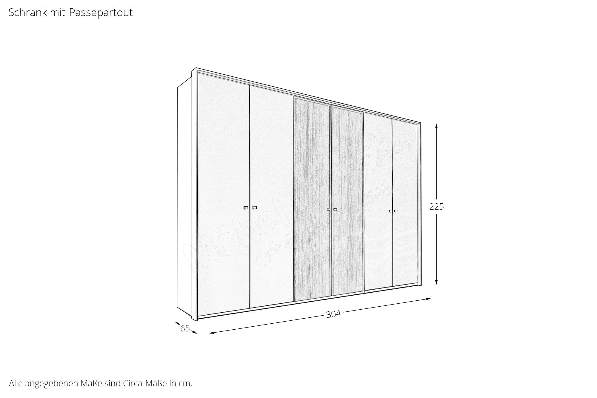 für Drehtürenschrank mit Breite ca. 301 cm