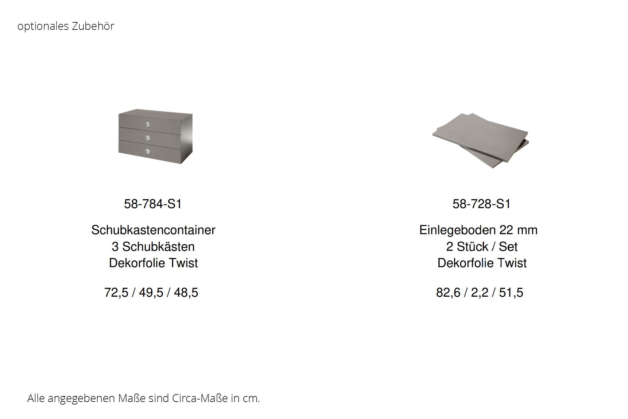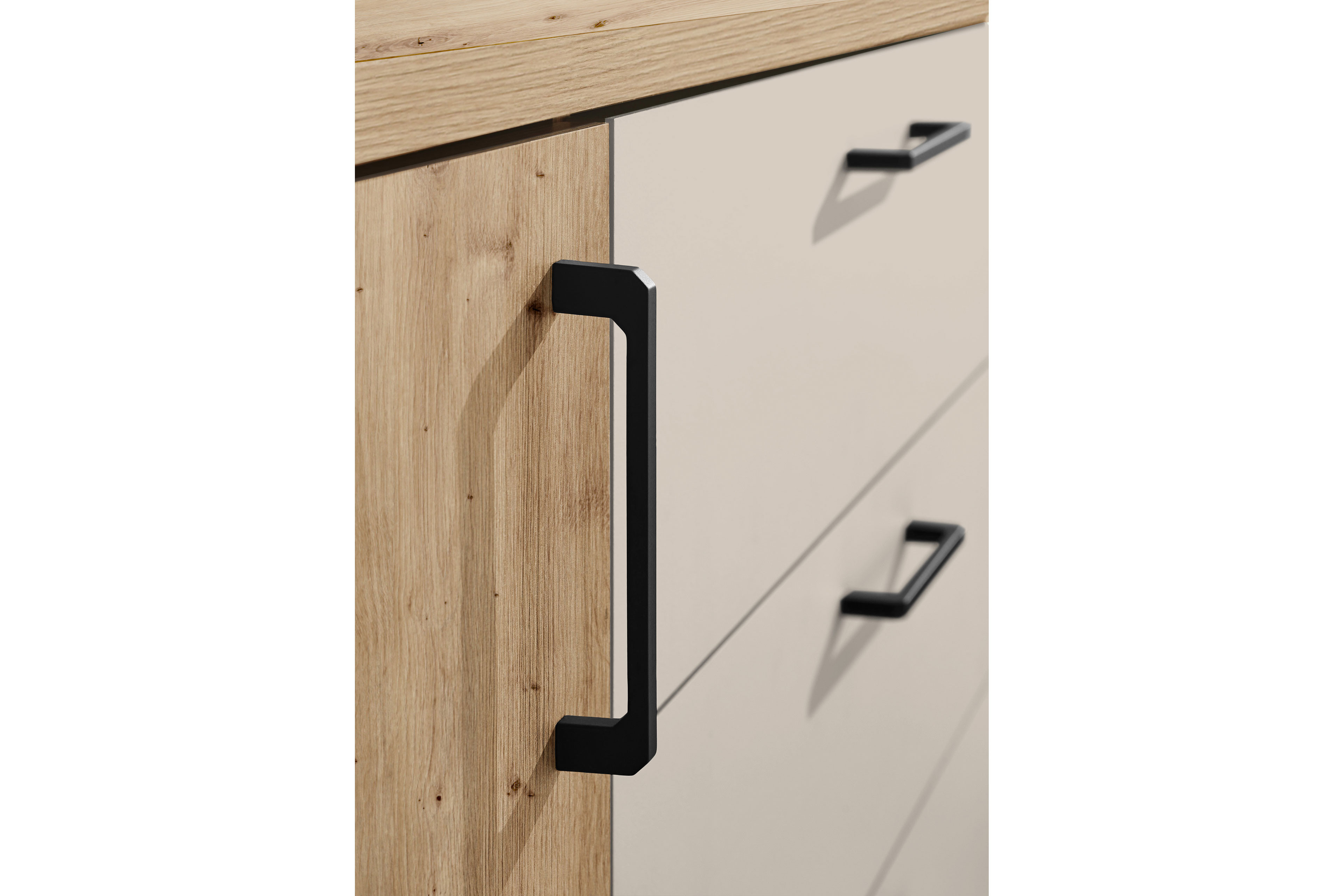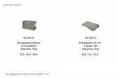 - Absetzung (2 Schubladenfronten): kaschmir (Dekorfolie)