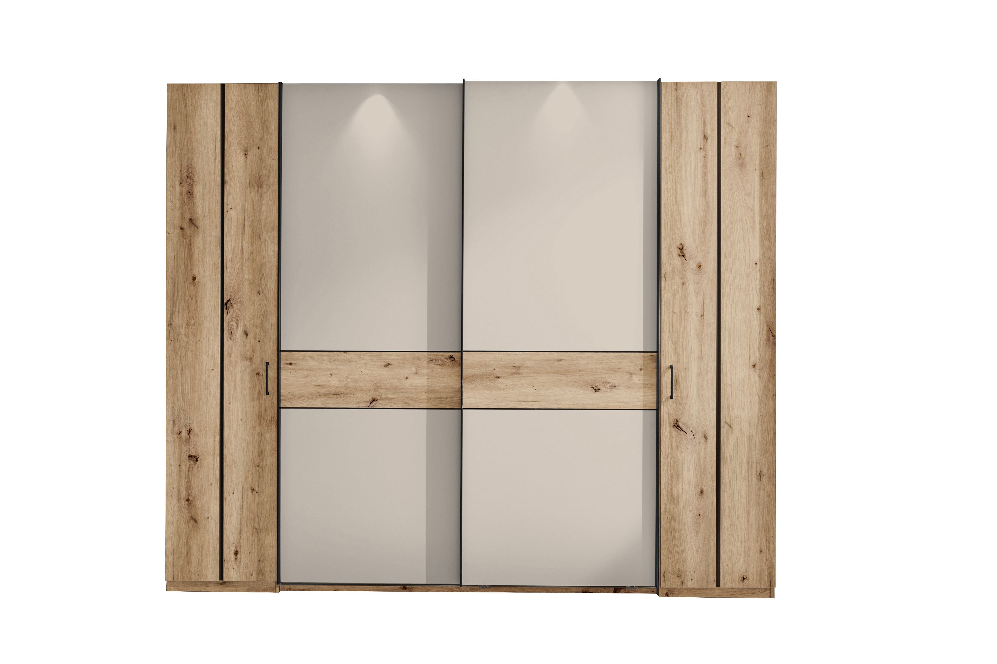 mit 2 Drehtüren außen und 2 Schwebetüren mittig