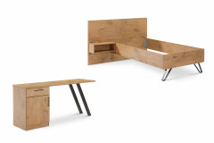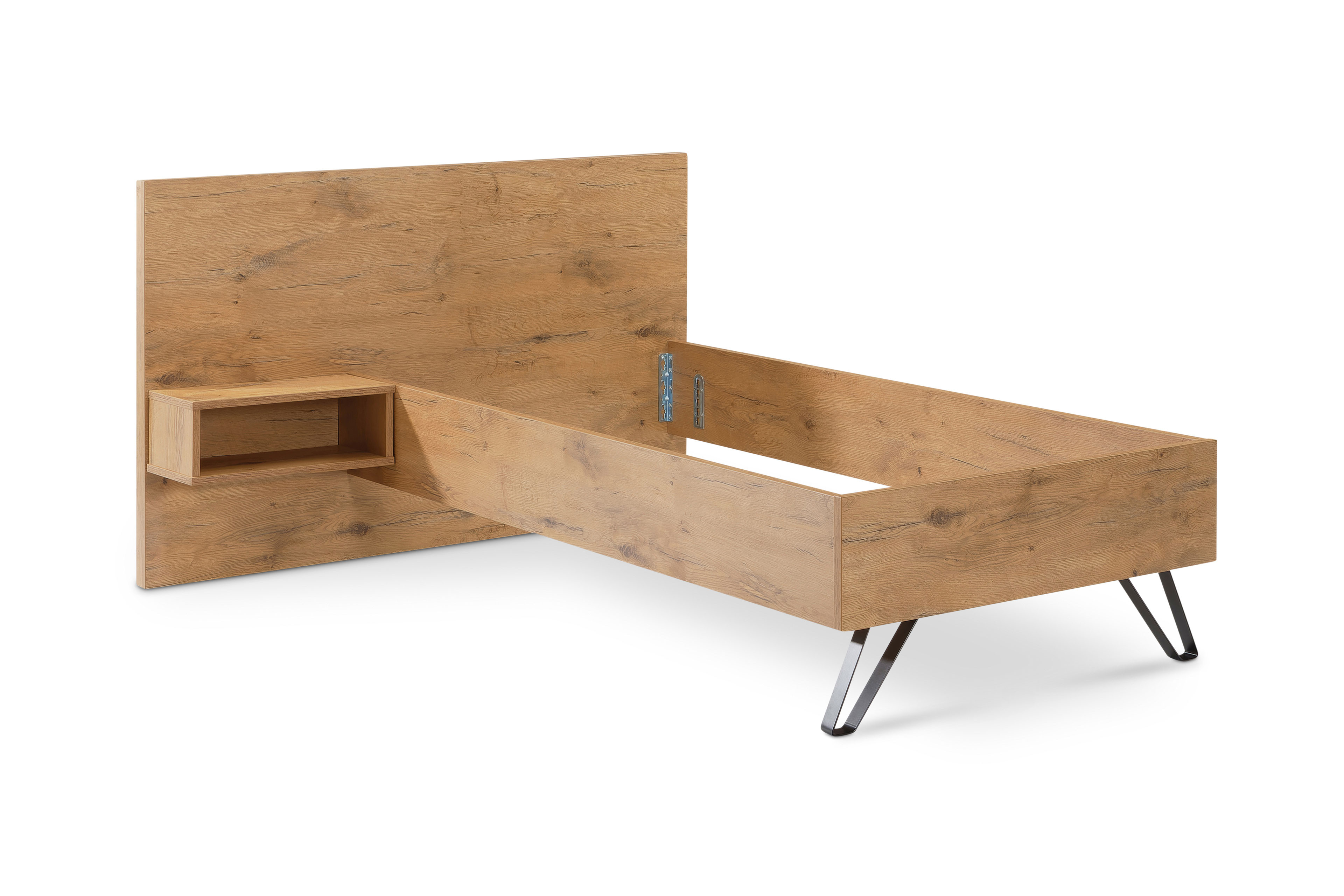 - Bett: Anstellbett mit breitem Kopfhaupt inklusive Nische und schwarzen Metallfüßen