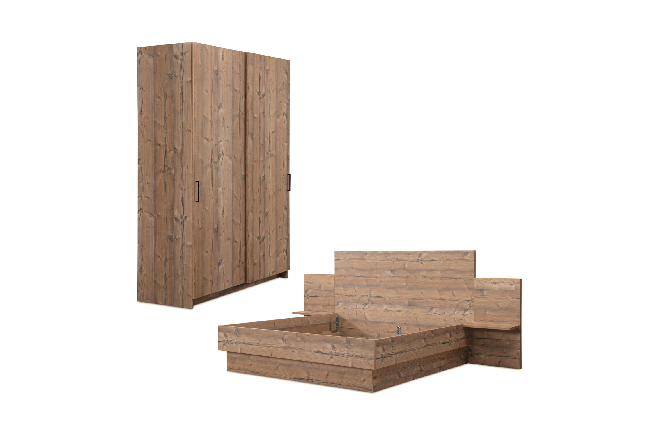- Bettrahmen/ Kopfteil/ Ablagen: Altfichte Nachbildung
