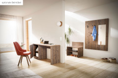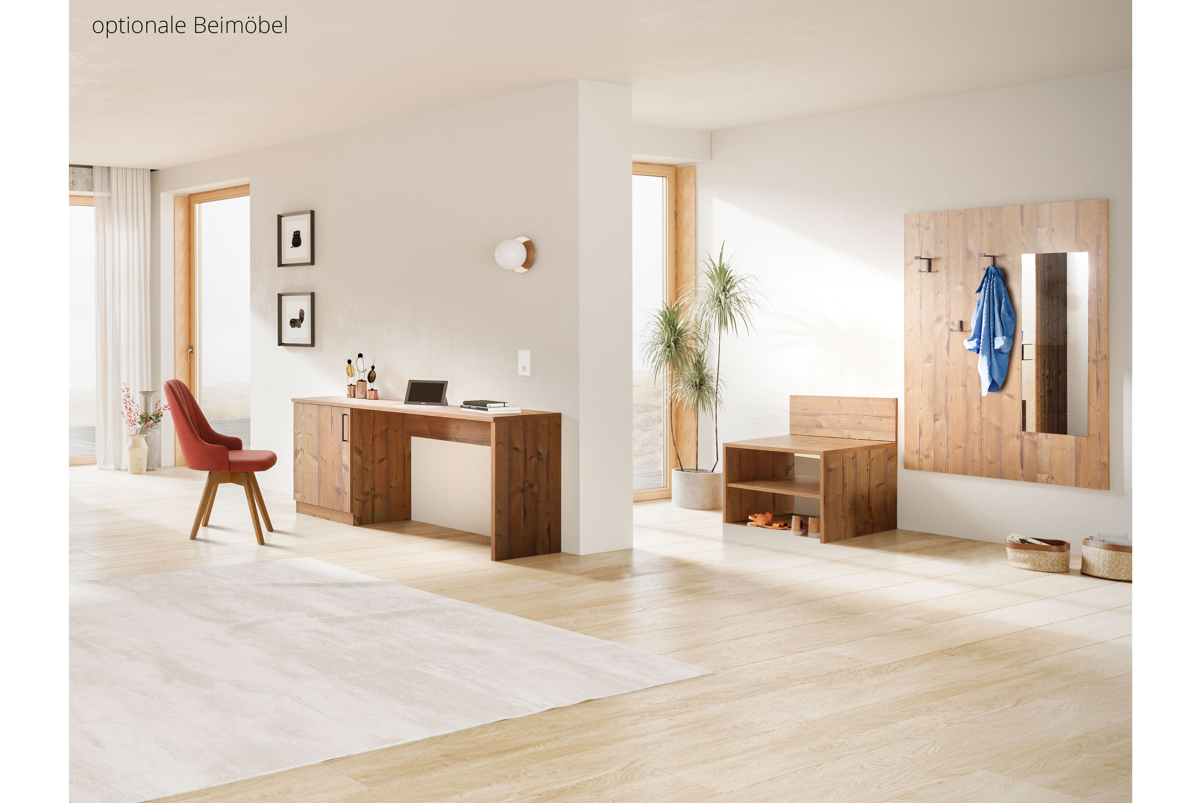 Ein etwa 150 cm breiter, rund 222 cm hoher sowie ca. 60 cm tiefer Schiebetürenschrank mit integriertem Ordnungssystem und ein Doppelbett mit rundum geschlossenem Sockel sowie einem großen, stufenförmigen Kopfteil mit praktischen Ablageböden bilden hier unser Schlafzimmer-Grundangebot. Die vorgestellten Möbel zeigen sich in der ausdrucksstarken Altfichte Holznachbildung und gehören zum umfangreichen Objektmöbel-Programm Meran der Firma Schösswender. Über die für Sie vorbereiteten Zusatzoptionen können Sie das Schlafzimmer-Set bei Bedarf verändern, um die neue Einrichtung bestmöglich an die vorhandenen räumlichen Gegebenheiten und Ihre individuellen Wünsche anzupassen. Zudem sind ein Schreibtisch als Arbeitsplatz sowie ein Schuhregal und ein Garderobenpaneel mit Spiegel für den Eingangsbereich zubuchbar, sodass auch weitere Wohnräume stilgleich ausgestattet werden können. In unserem Online-Shop finden Sie auch zum gewählten Bett passendes Zubehör in Form von Lattenrosten und Matratzen. Viele weitere herstellertypische Einrichtungslösungen für Ihr Zuhause stellen wir Ihnen in der zugehörigen Modellübersicht vor, die sich über den Link Schösswender Möbel öffnen lässt.