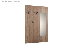 - Kleiderschrank: 2 Elemente, davon 1 Wäschefach mit 5 Fachböden und 1 Kleiderfach mit 1 Fachboden und 1 Fachboden mit Verbinder mit Kleiderstange
