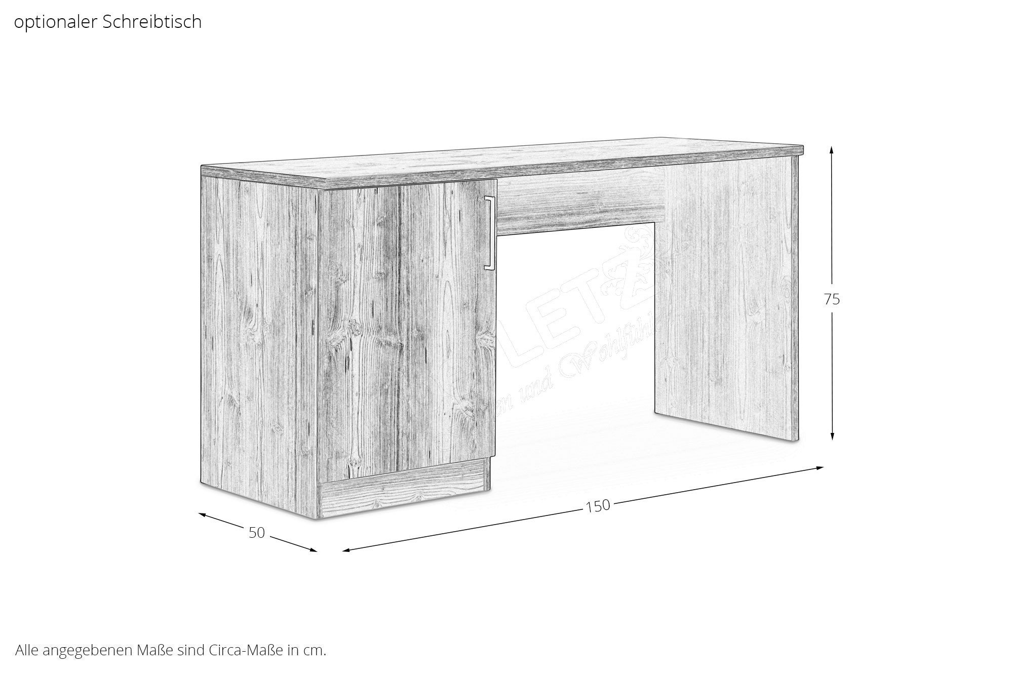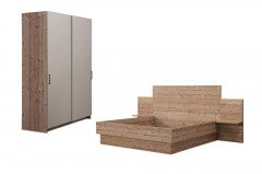 Ein etwa 150 cm breiter, rund 222 cm hoher sowie ca. 60 cm tiefer Schiebetürenschrank mit integriertem Ordnungssystem und ein Doppelbett mit rundum geschlossenem Sockel sowie einem großen, stufenförmigen Kopfteil mit praktischen Ablageböden bilden hier unser Schlafzimmer-Grundangebot. Die vorgestellten Möbel zeigen sich in der ausdrucksstarken Altfichte Holznachbildung mit kaschmirfarbener Absetzung und gehören zum umfangreichen Objektmöbel-Programm Meran der Firma Schösswender. Über die für Sie vorbereiteten Zusatzoptionen können Sie das Schlafzimmer-Set bei Bedarf verändern, um die neue Einrichtung bestmöglich an die vorhandenen räumlichen Gegebenheiten und Ihre individuellen Wünsche anzupassen. Zudem sind ein Schreibtisch als Arbeitsplatz sowie ein Schuhregal und ein Garderobenpaneel mit Spiegel für den Eingangsbereich zubuchbar, sodass auch weitere Wohnräume stilgleich ausgestattet werden können. In unserem Online-Shop finden Sie auch zum gewählten Bett passendes Zubehör in Form von Lattenrosten und Matratzen. Viele weitere herstellertypische Einrichtungslösungen für Ihr Zuhause stellen wir Ihnen in der zugehörigen Modellübersicht vor, die sich über den Link Schösswender Möbel öffnen lässt.
