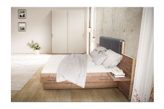 - Bettrahmen/ Kopfteil/ Ablagen: Altfichte Nachbildung